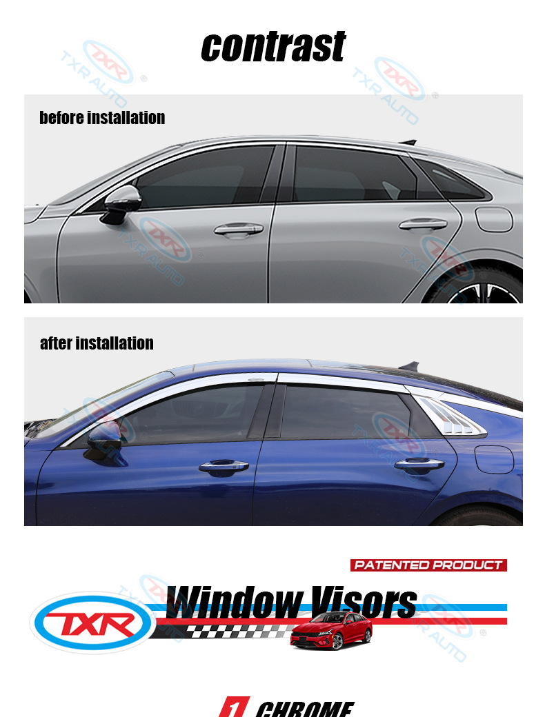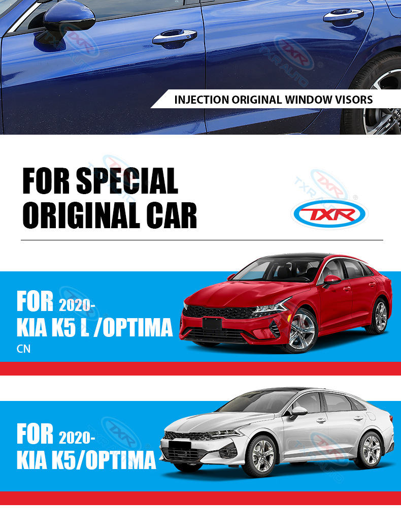 TXR는 기아 비 또는 빛 방지 K-쿨 자동차 창문 레인 바이저 kia k5 윈도우 바이저 특수 레인 바이저에 적합합니다.