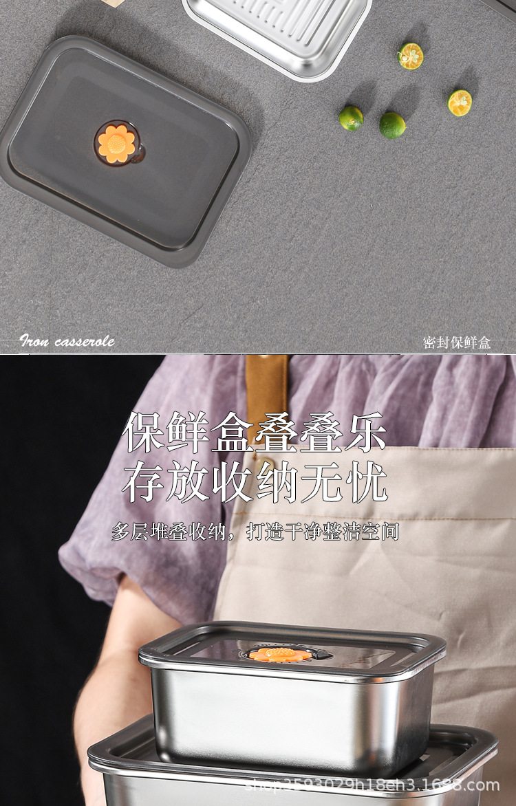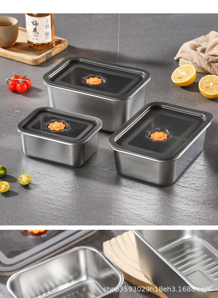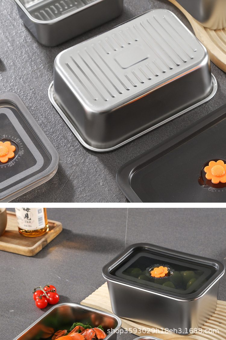 국경 간 신선한 보관 상자 밀폐형 만두 상자 스테인레스 스틸 서브 포장 냉장고 보관 냉동고 상자 작업 도시락 도시락스토어 가기