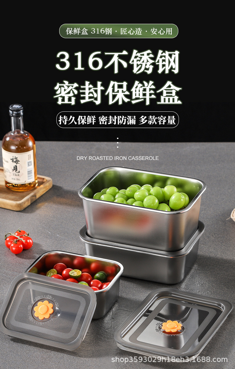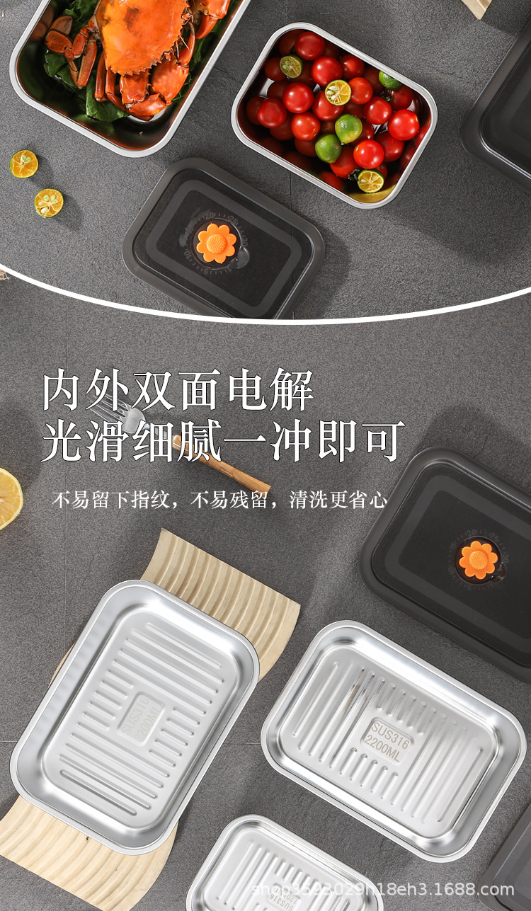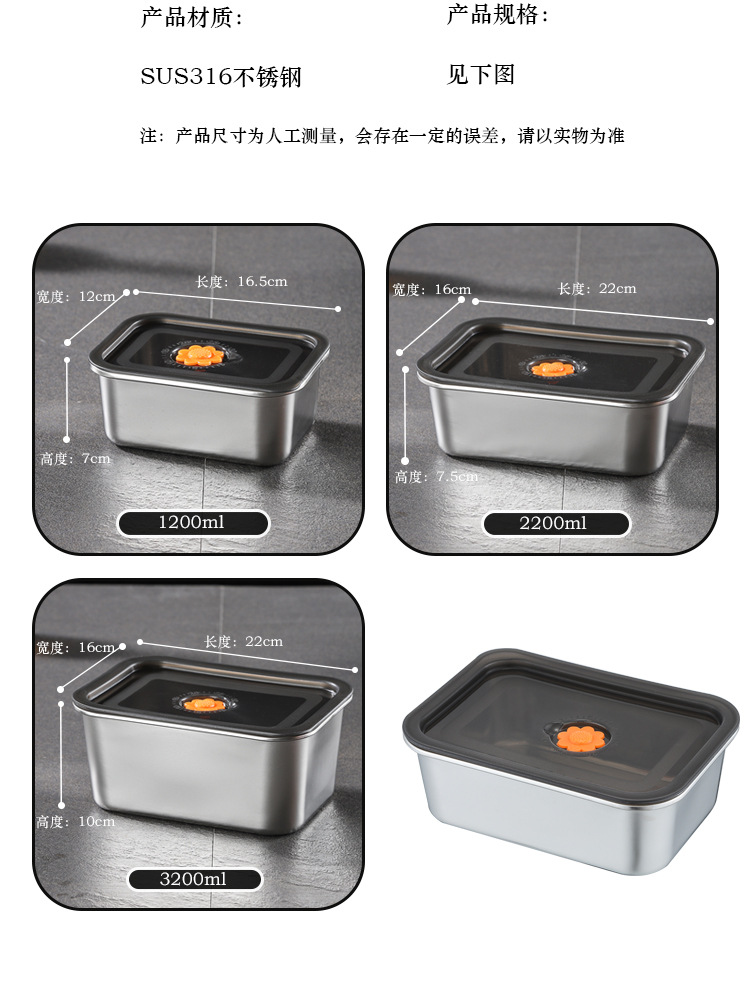 국경 간 신선한 보관 상자 밀폐형 만두 상자 스테인레스 스틸 서브 포장 냉장고 보관 냉동고 상자 작업 도시락 도시락