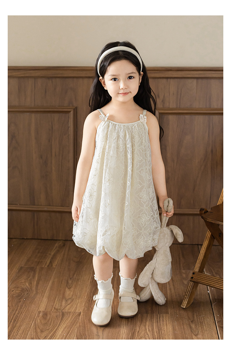 Wurib 소녀의 외국 스타일 얇은 원피스 2025 여름 새로운 어린이 작은 신선한 서스펜더 스커트 베이비 스커트스토어 가기