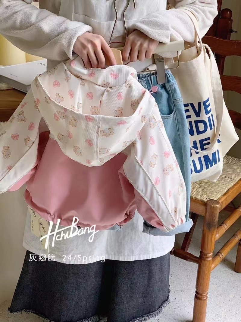 한 팬 아동복 소녀의 핑크 충전 옷 봄 옷 서양식 어린이 스티칭 재킷 탑 아기 지퍼 코트