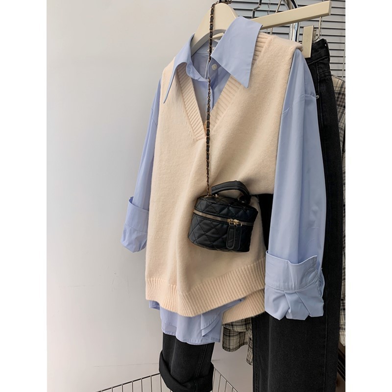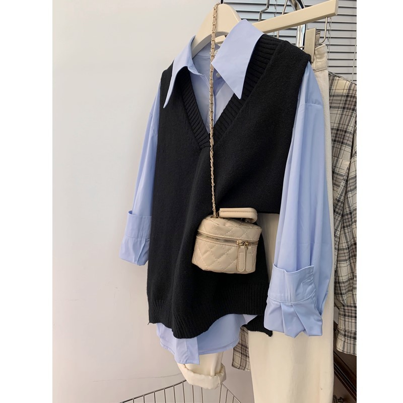 칼라 니트 조끼 여성용 봄과 가을 조끼 조끼 겨울 보텀 아웃 아웃 스타킹 셔츠 투피스 세트 착용스토어 가기