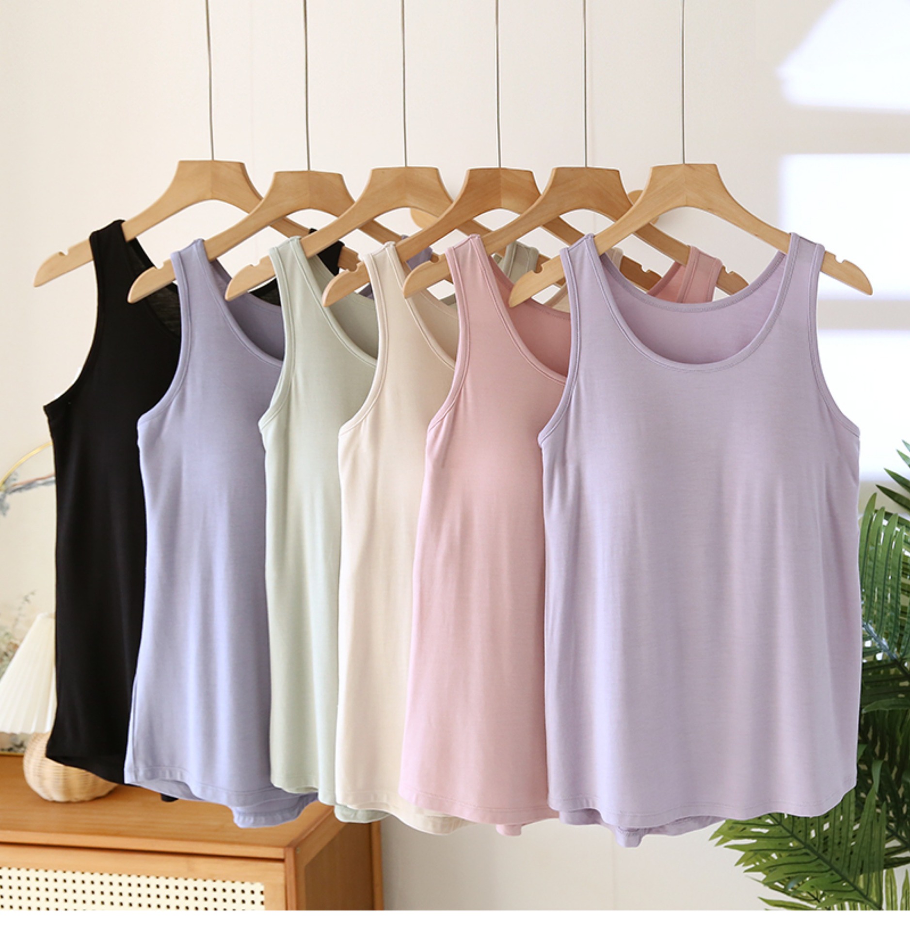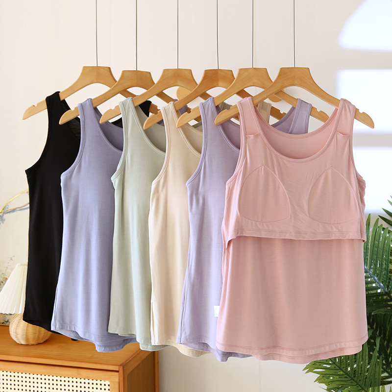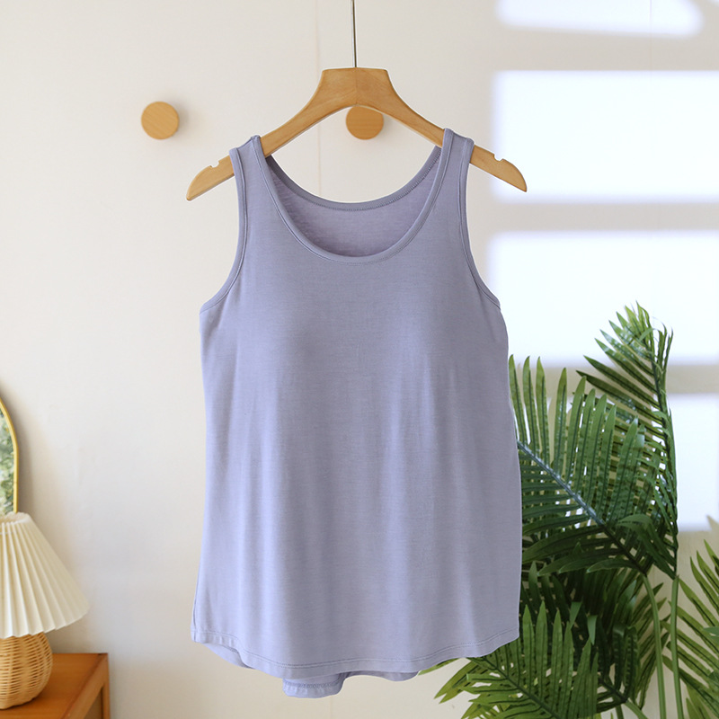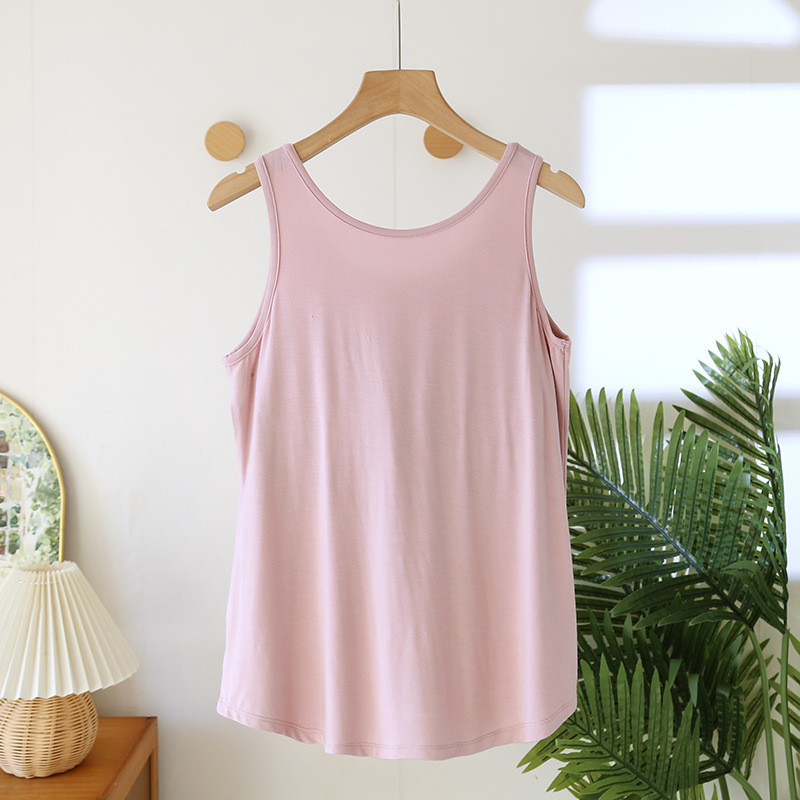 가슴 패드가 달린 모달 조끼 여성용 탄성 민소매 베이스 셔츠 봄과 여름 얇은 무료 브래지어 플러스 사이즈 내부 셔츠