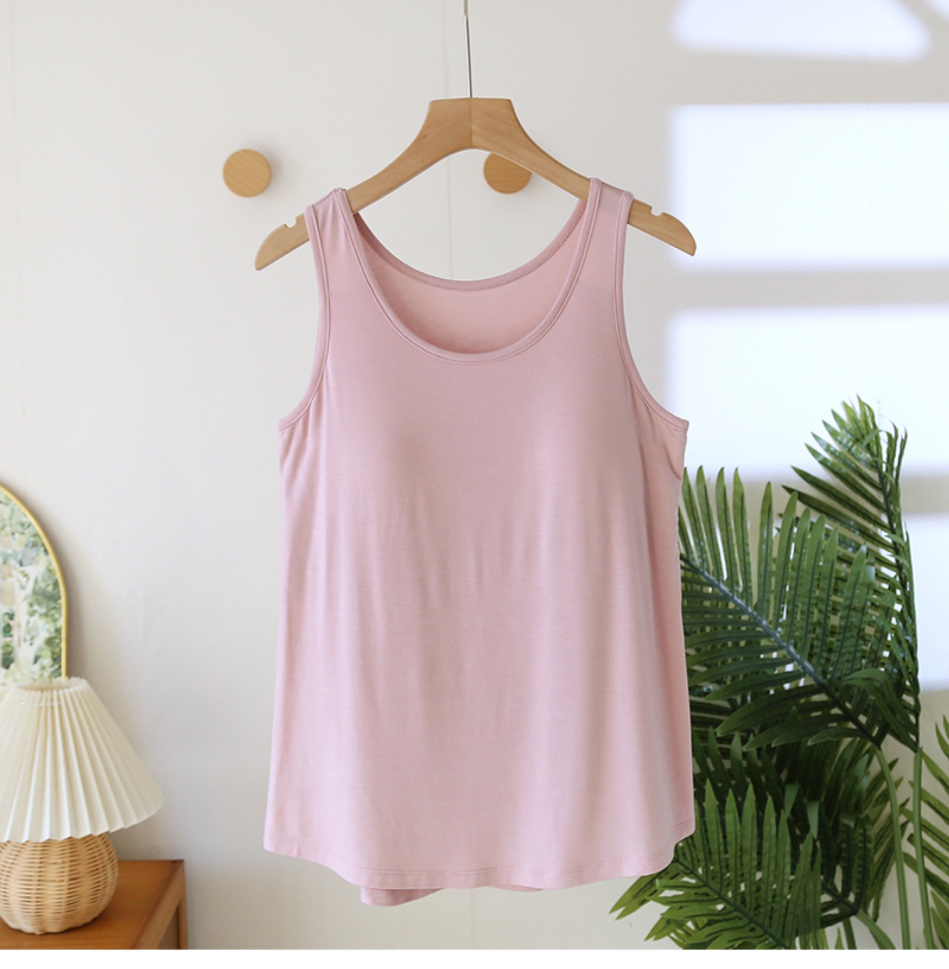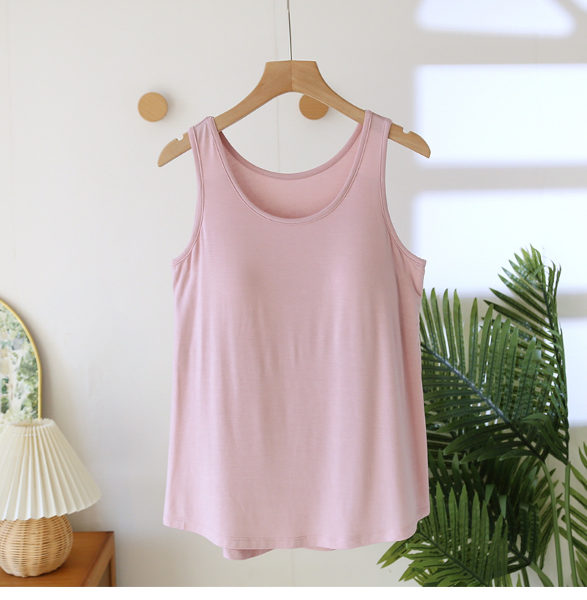가슴 패드가 달린 모달 조끼 여성용 탄성 민소매 베이스 셔츠 봄과 여름 얇은 무료 브래지어 플러스 사이즈 내부 셔츠스토어 가기