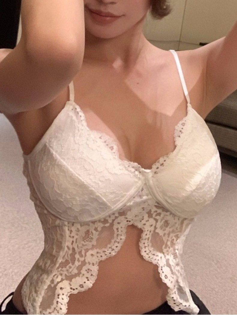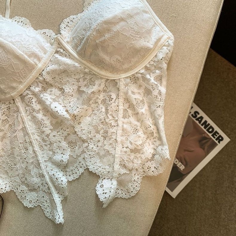 순수한 욕망 스타일 뜨거운 소녀 디자인 센스 나비 할로우 백리스 슬림-적합 슬리밍 레이스 짧은 블랙 슬링 탑