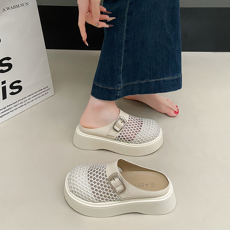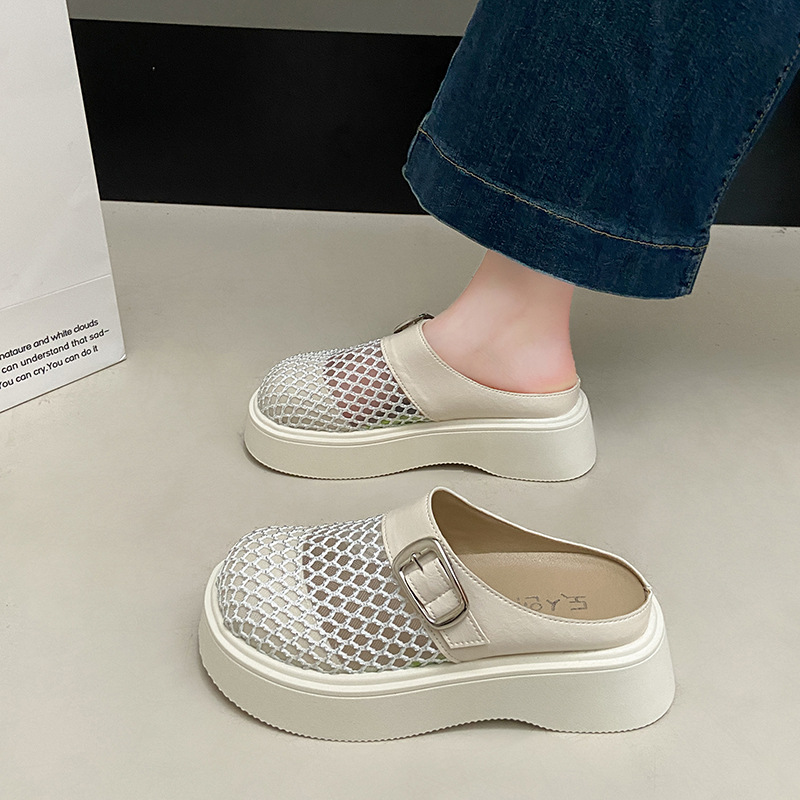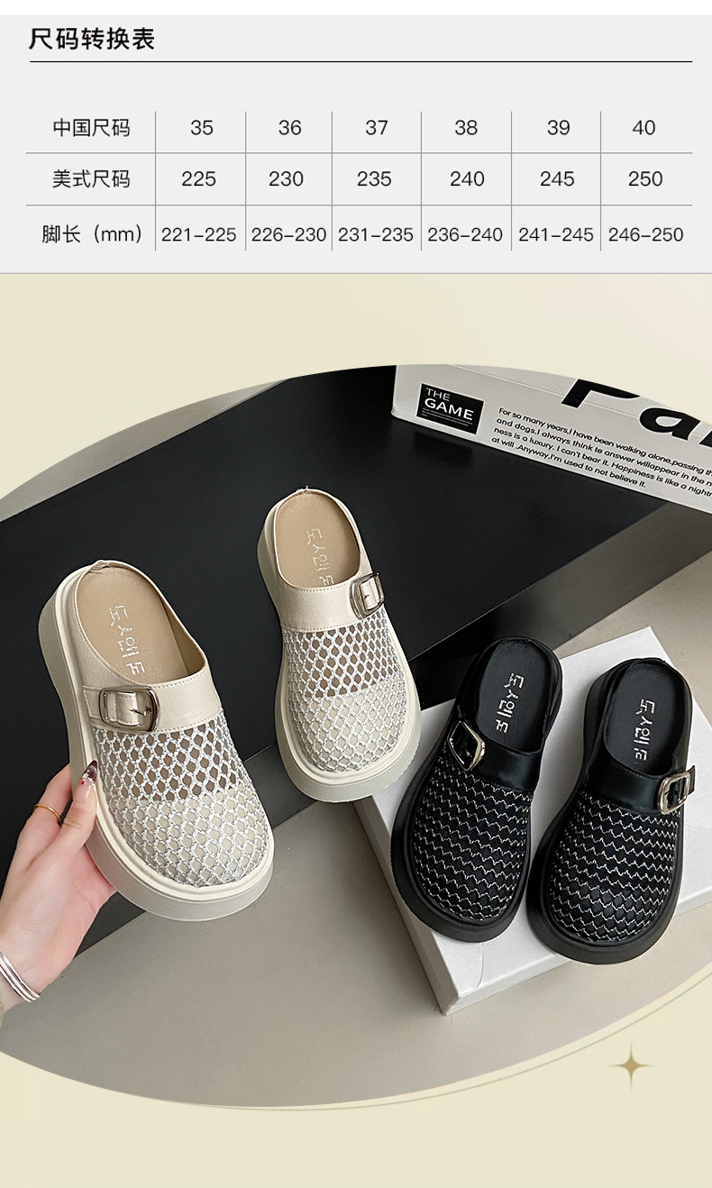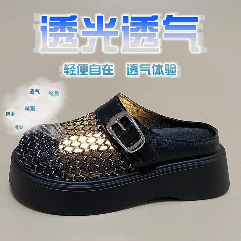 Baotou 슬리퍼 여성용 2025 새로운 빈티지 짠 Baotou 하프 슬리퍼 두꺼운 바닥 슬립 온 할로우 슬리퍼스토어 가기