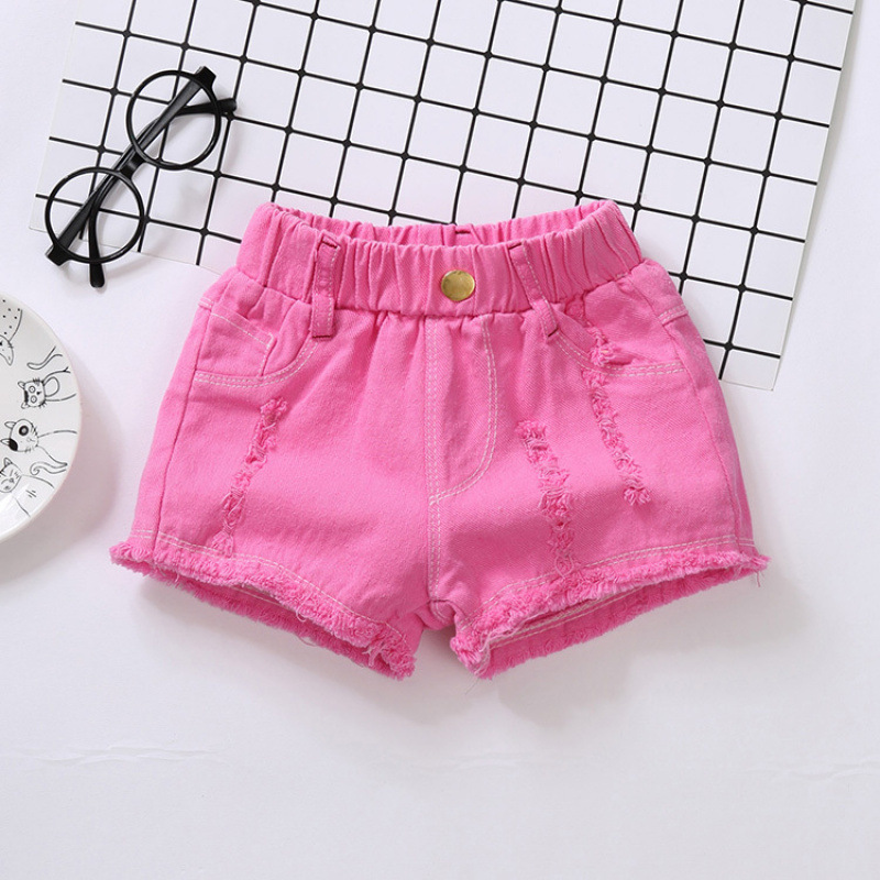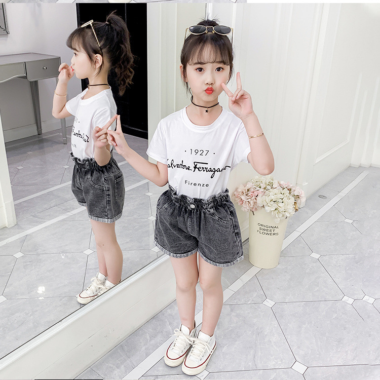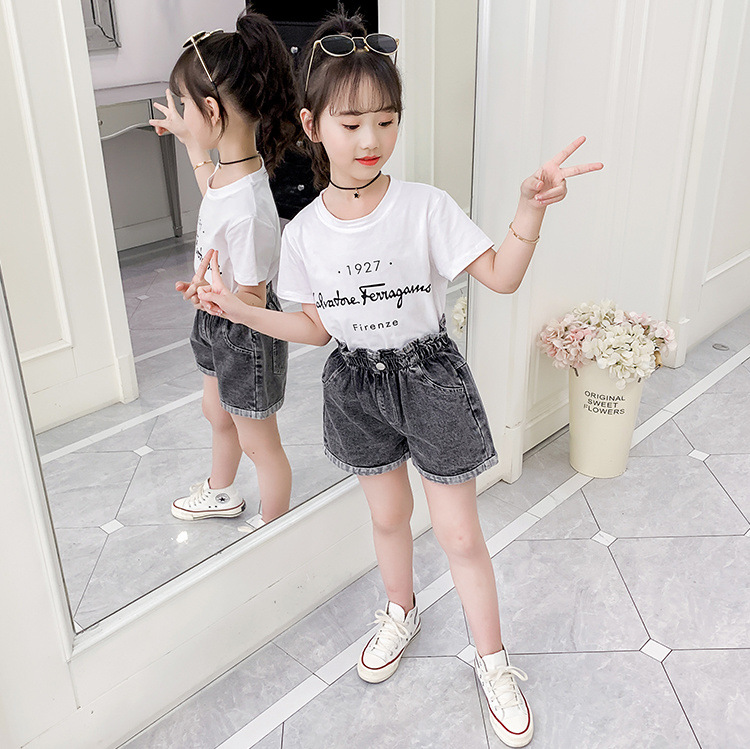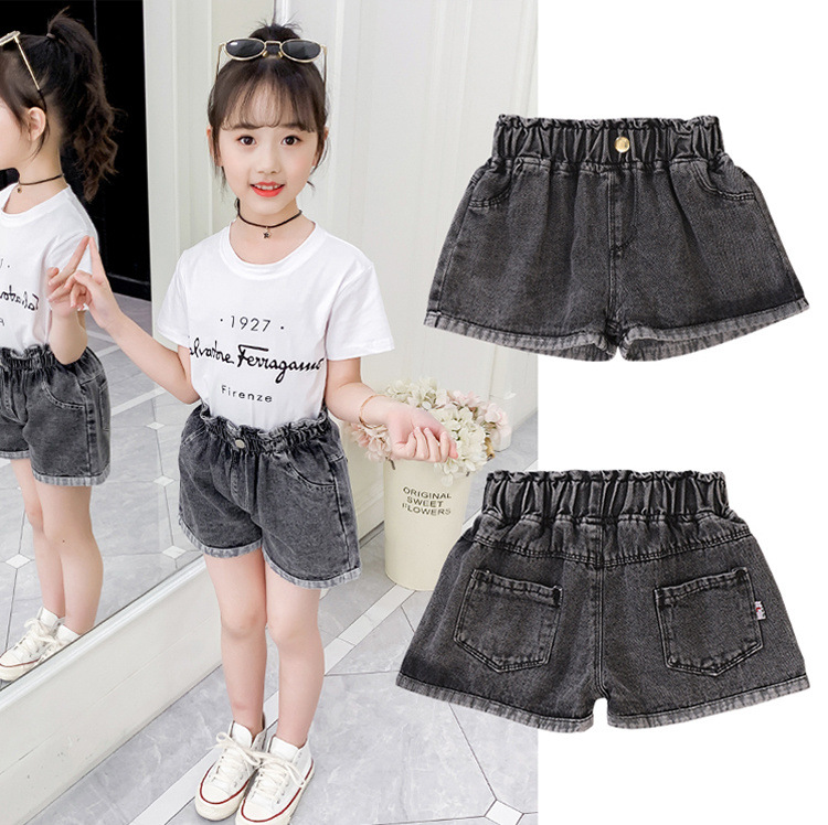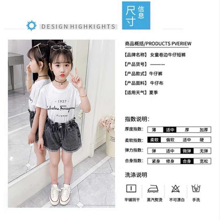 여자 데님 반바지 여름 원피스 서양식 중대형 어린이 꽃 버드 바지 어린이 한국식 외부 착용 핫 바지 얇은