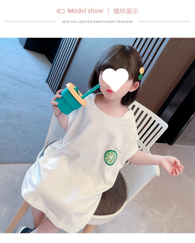 소녀들의 나이트가운 여름 얇은 어린이 잠옷 순수한면 반팔 집 옷 소녀들의 마을 밖 아기의 원피스 옷