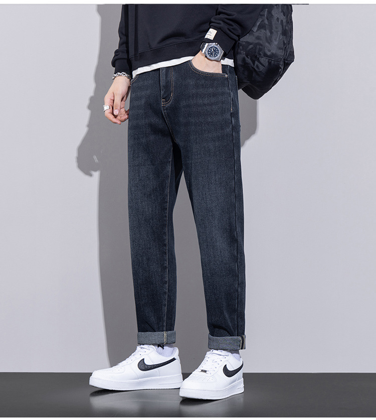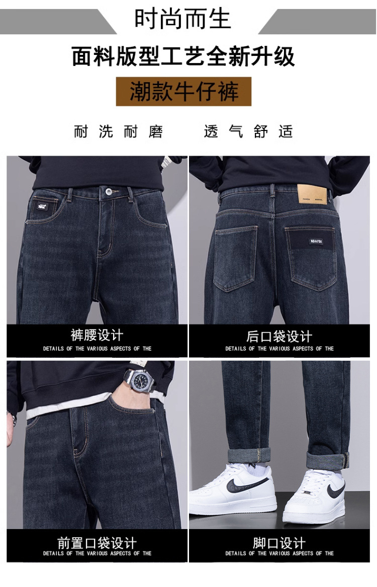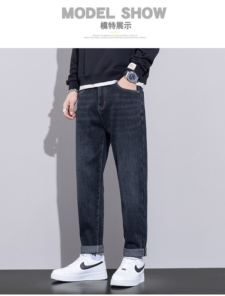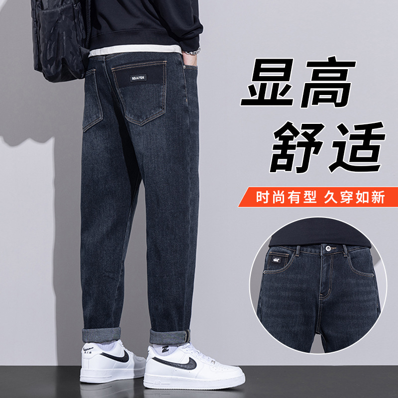 청바지 남성용 루즈 스트레이트 2025 새로운 패션 브랜드 캐주얼 가을과 겨울 테이퍼 스트레치 트렌디 긴 바지스토어 가기
