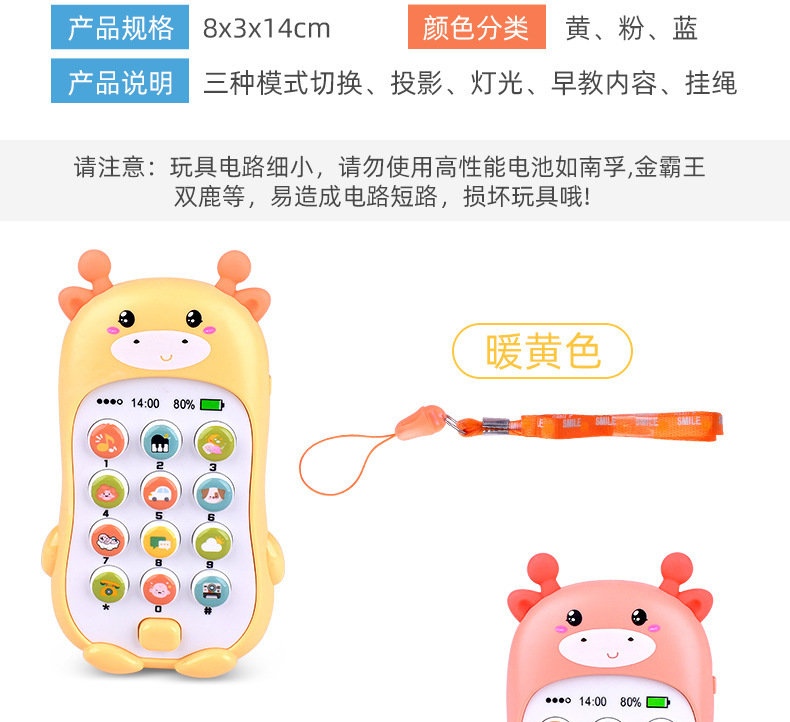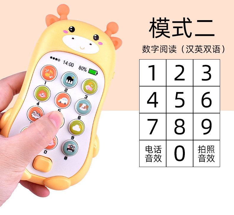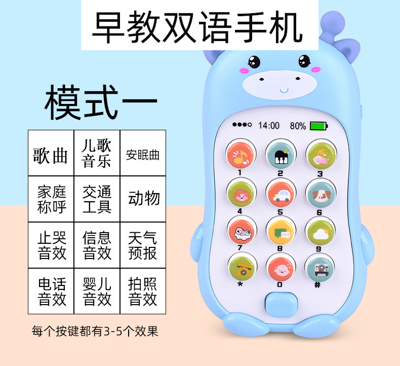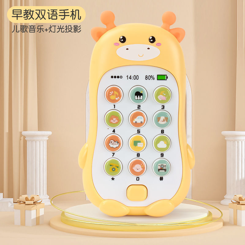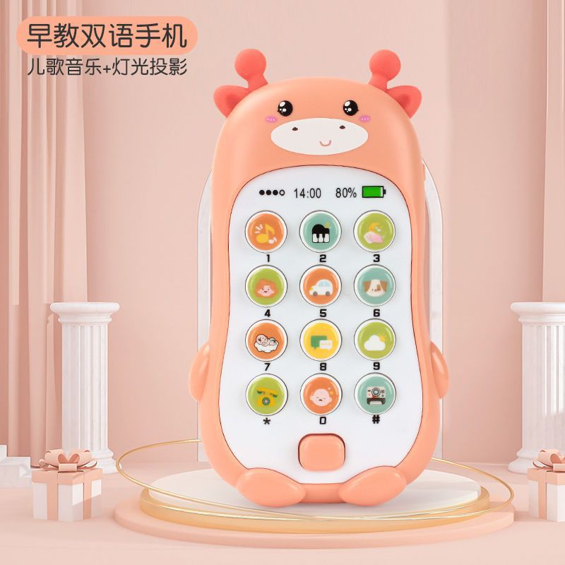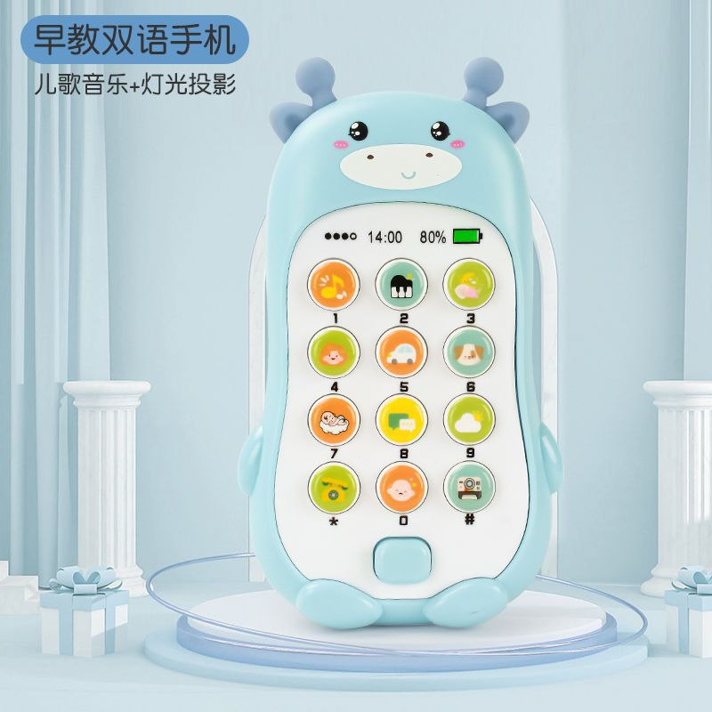조기 교육 이중 언어 fawn 프로젝션 휴대 전화 어린이 음악 장난감 교육 시뮬레이션 전화 아기의 이빨