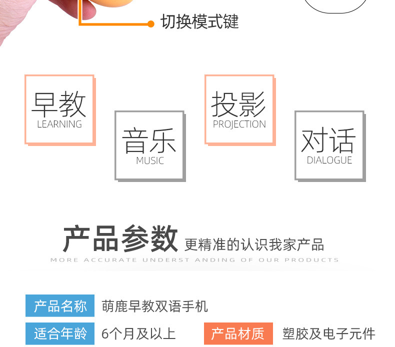 조기 교육 이중 언어 fawn 프로젝션 휴대 전화 어린이 음악 장난감 교육 시뮬레이션 전화 아기의 이빨스토어 가기