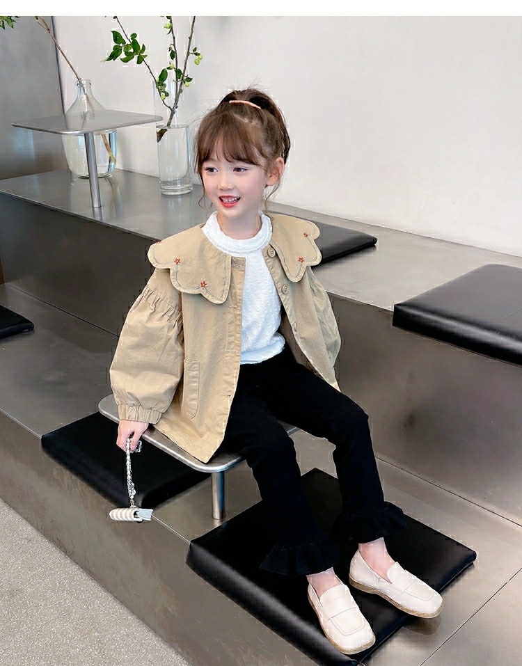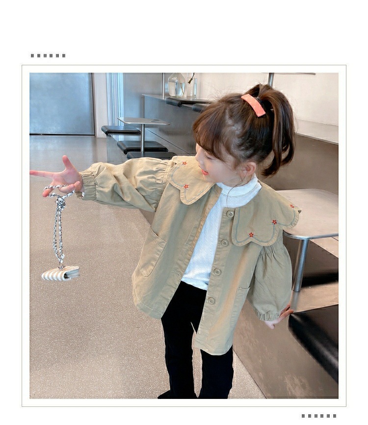 소녀 바람막이 가을 2025 새로운 소녀 세련된 한국 긴 소매 탑 인형 봄 가을 어린이 코트