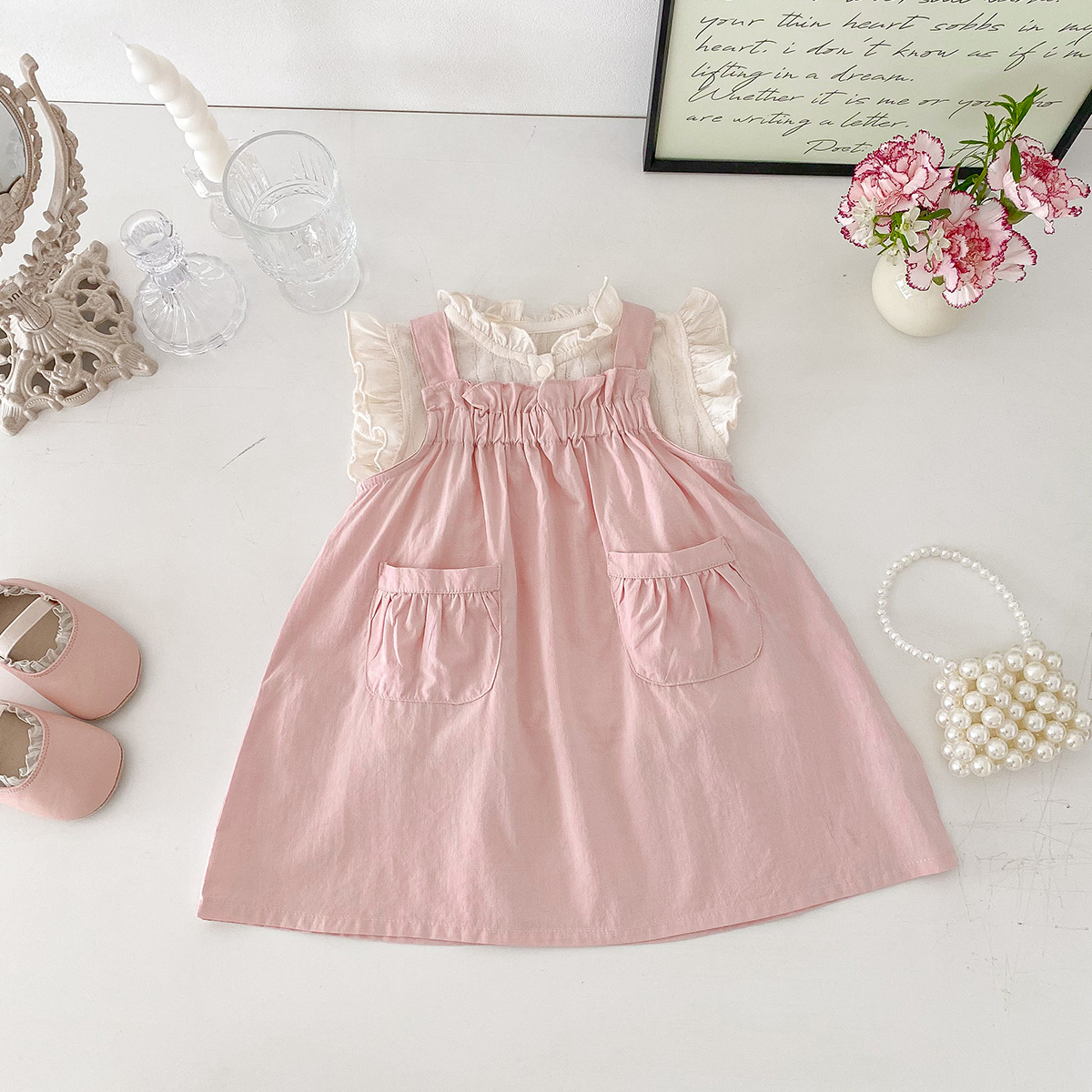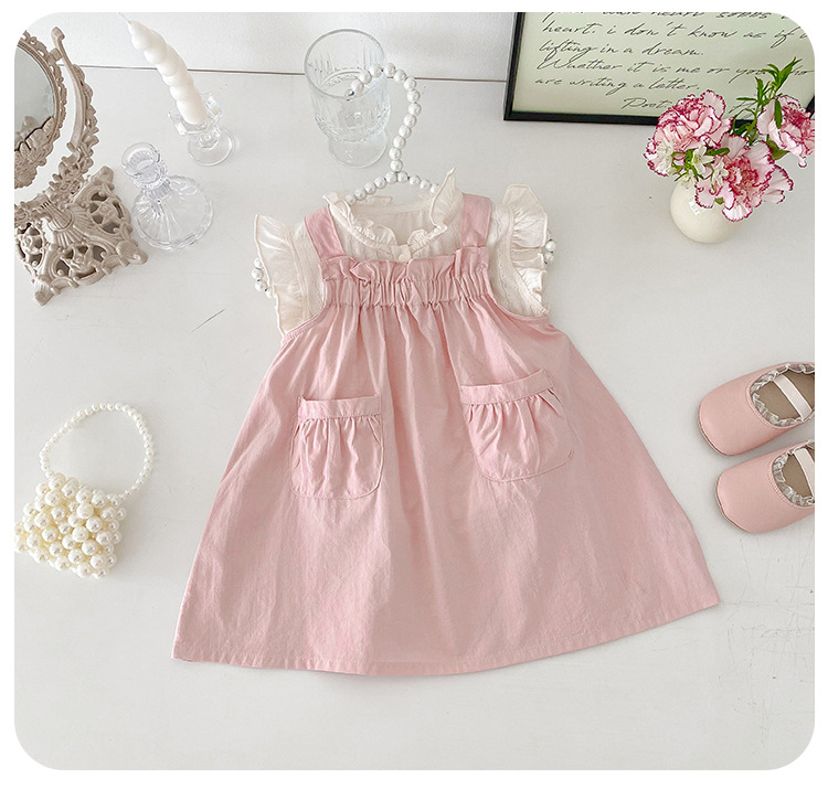 디안시 2025 여아 여름복 세트, 여아용 심플한 멜빵 스커트 티셔츠, 영유아용 달콤한 투피스 세트