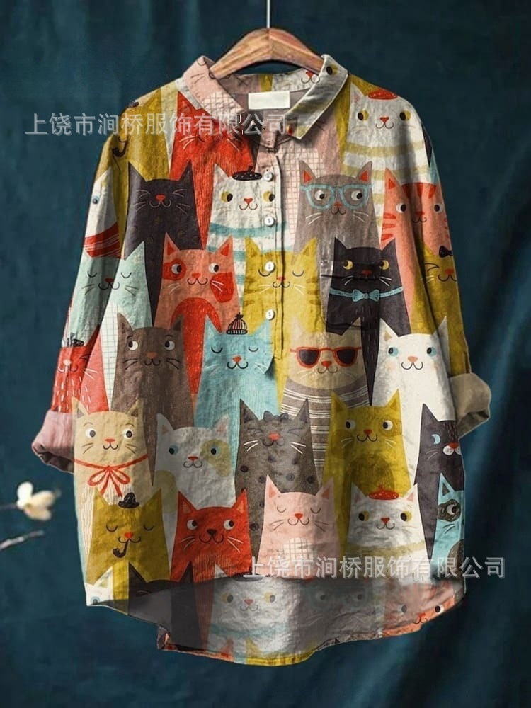 독립형 웹사이트 유럽 및 미국 해외 직구 신상 캐주얼 긴팔 셔츠 동물 프린트 하와이안 셔츠 POD 아마존
