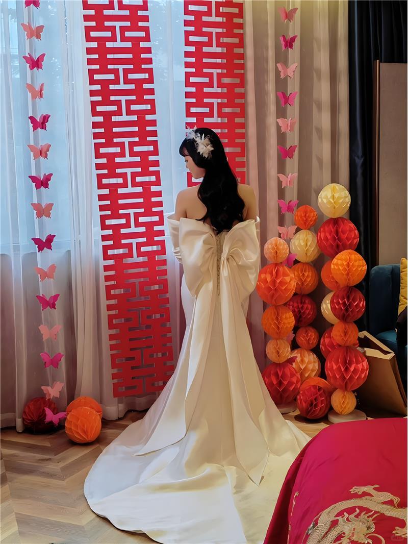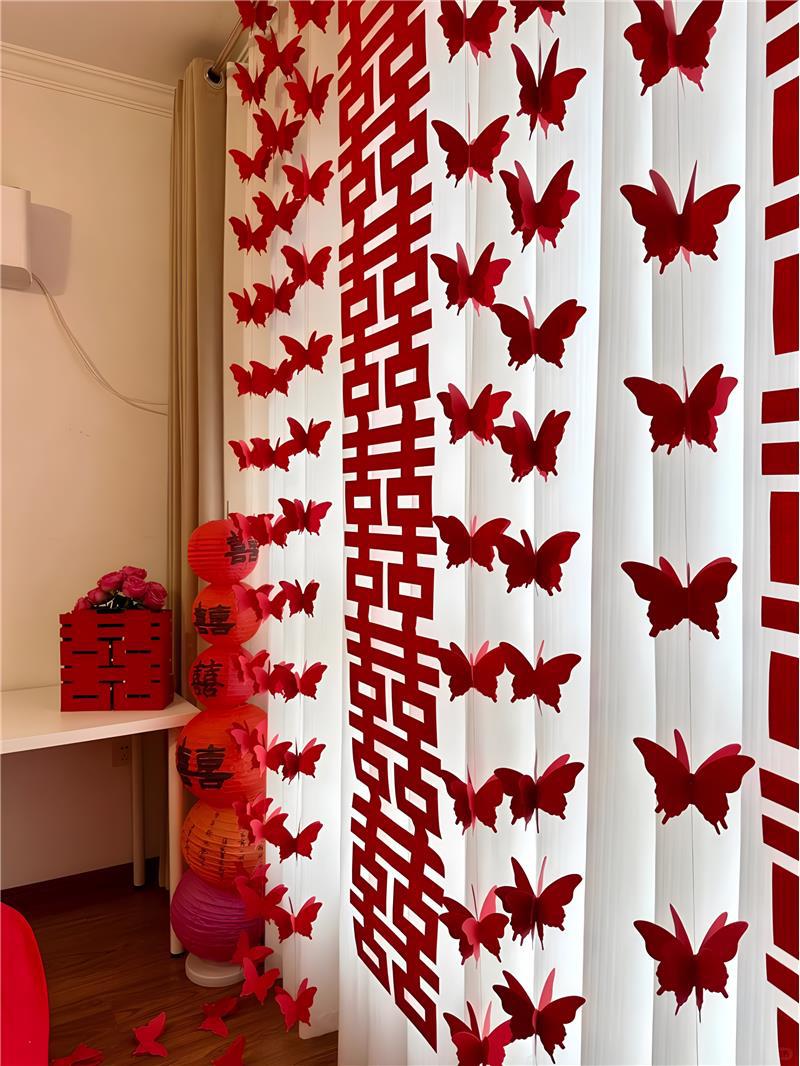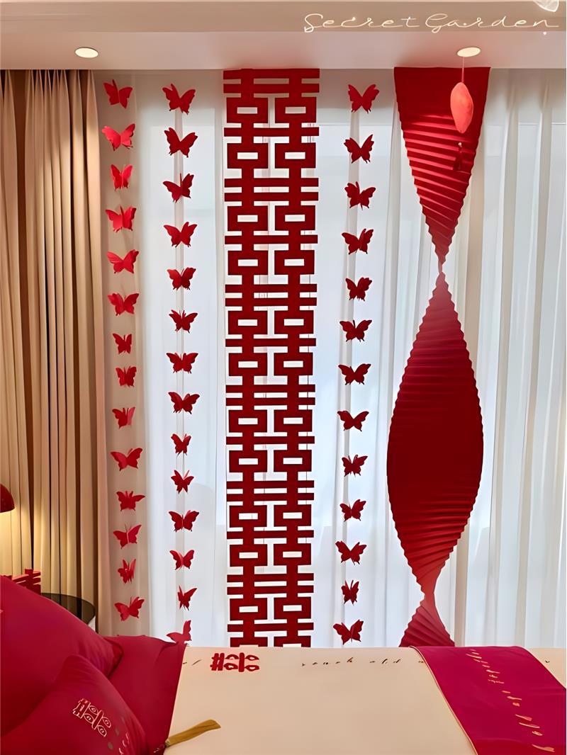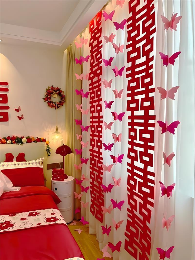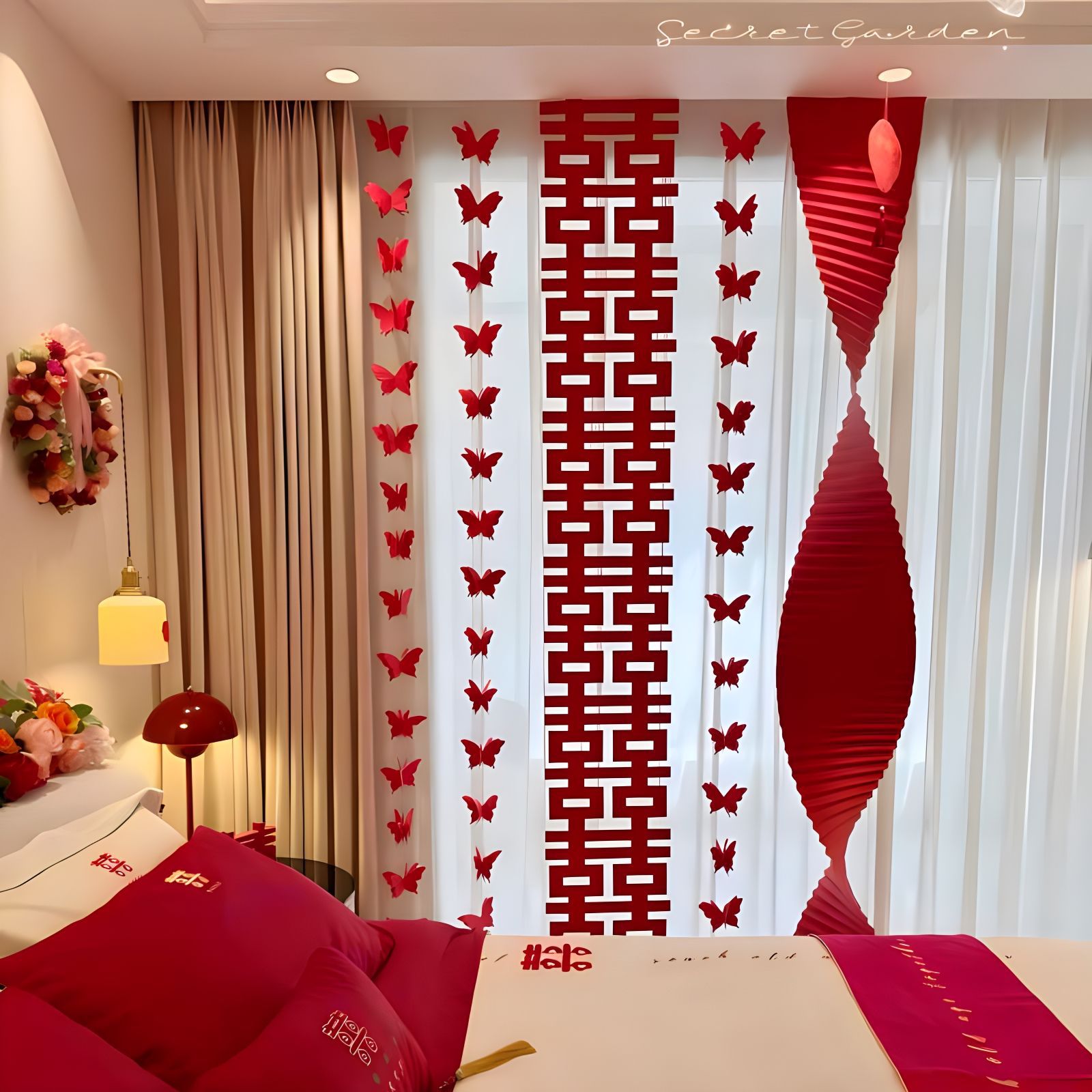 웨딩 룸은 남성과 여성, 마스터 침실, 거실, 호텔, 새 집, 커튼, 꽃, 세트, 긴 행복한 캐릭터 매달린 장식품을 위해 마련되었습니다.스토어 가기