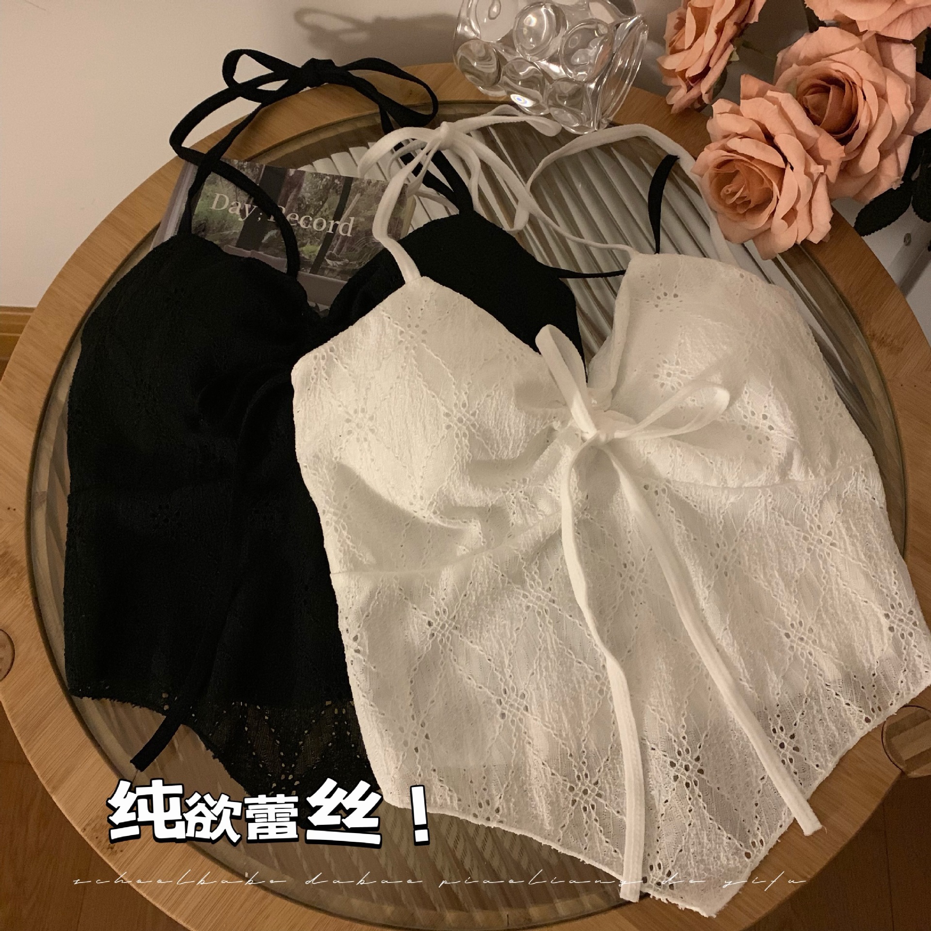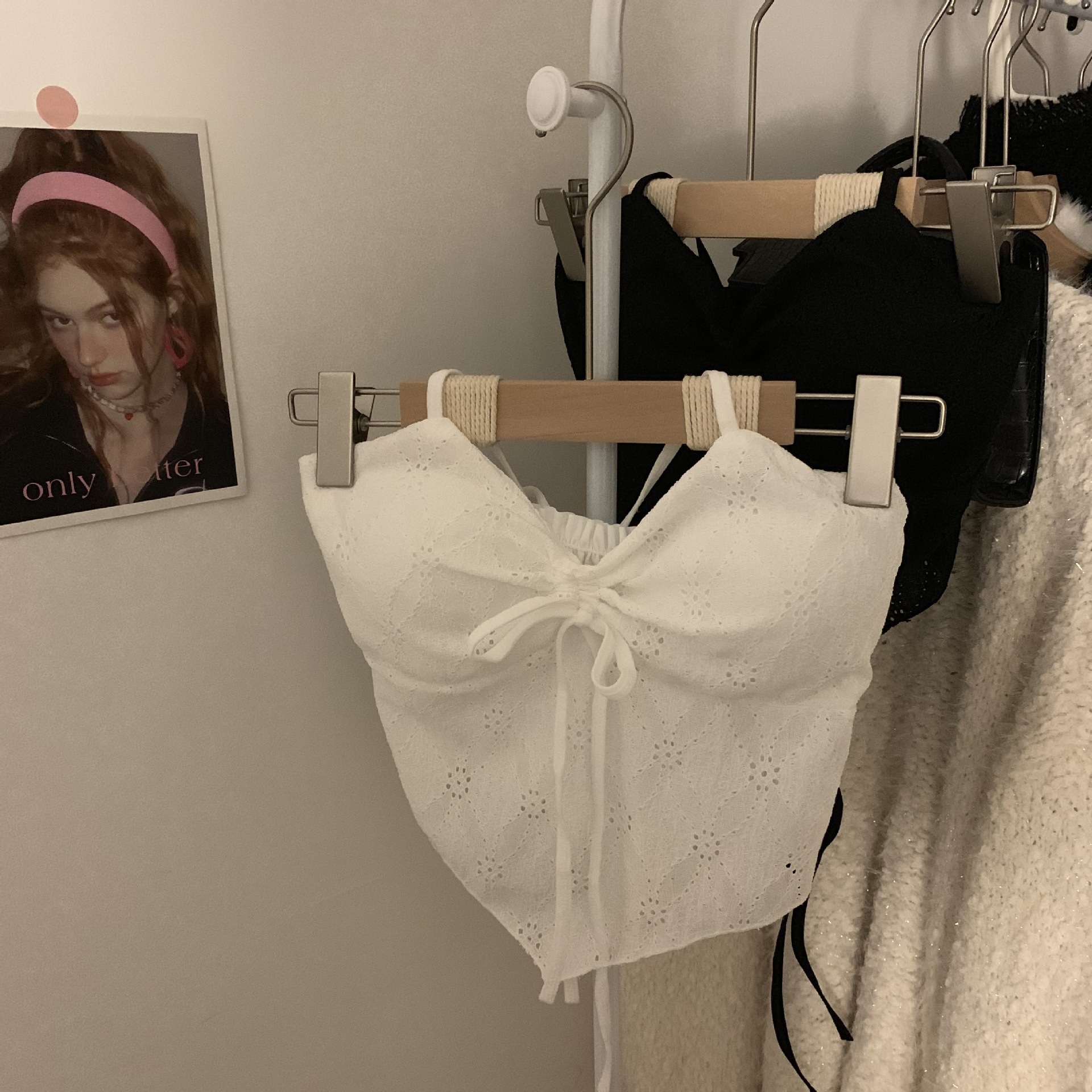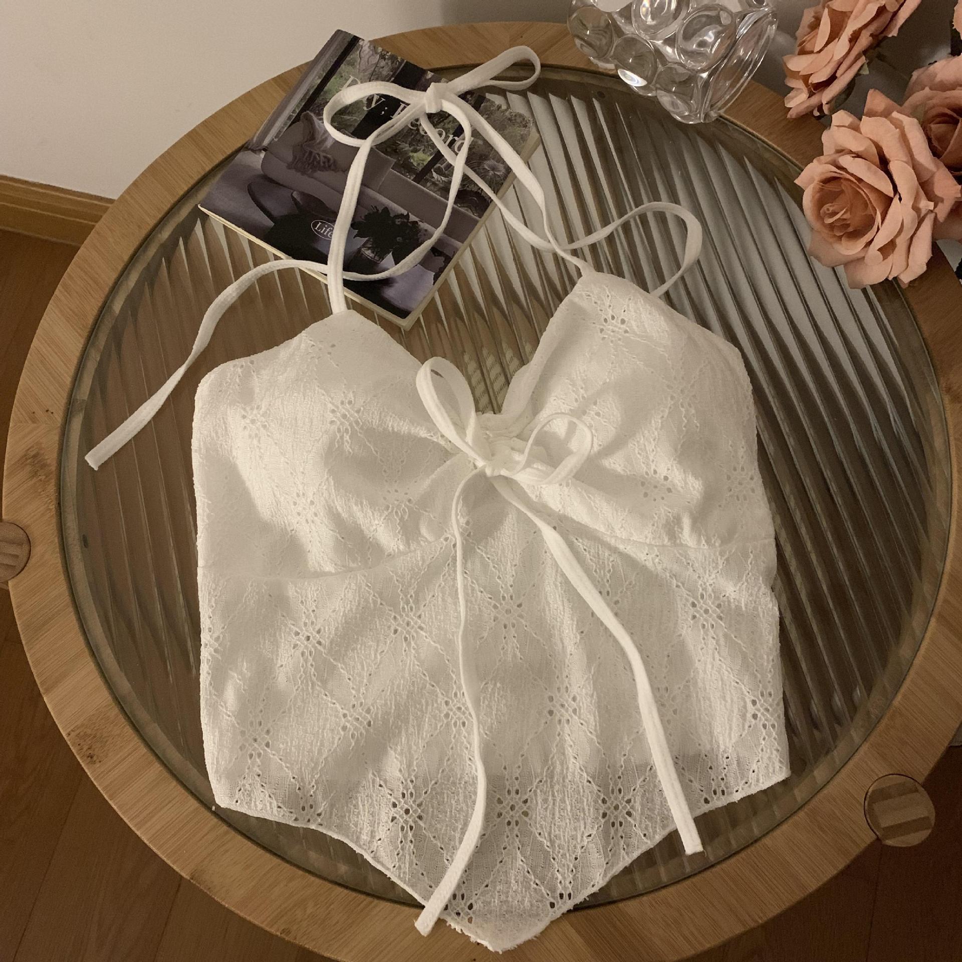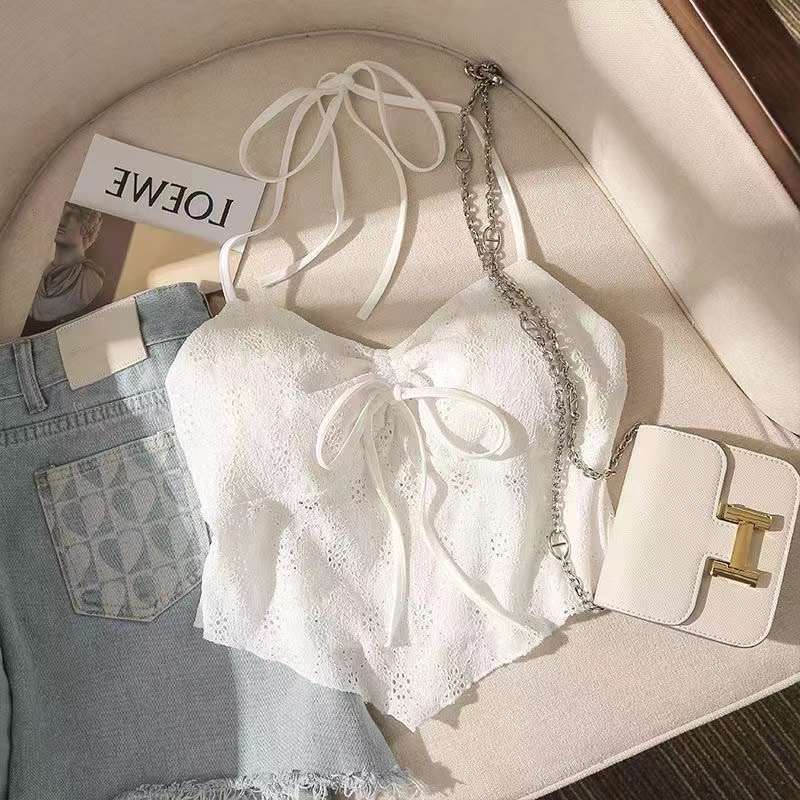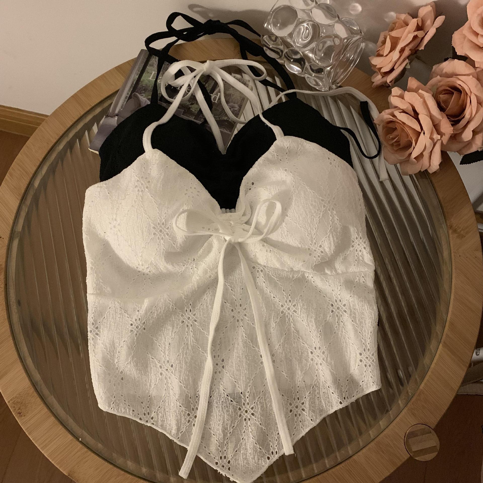 2024 순수한 욕망 레이스 넥 넥타이 로프 슬링 활 디자인 핫 소녀 가슴 패드 끈이없는 아름다운 백탑