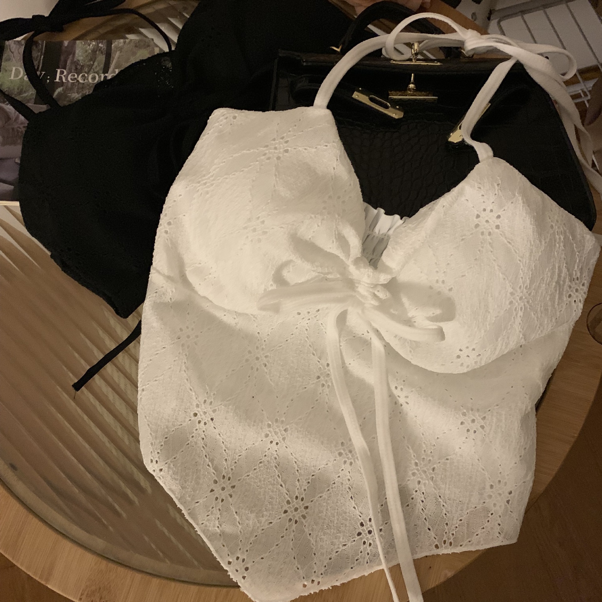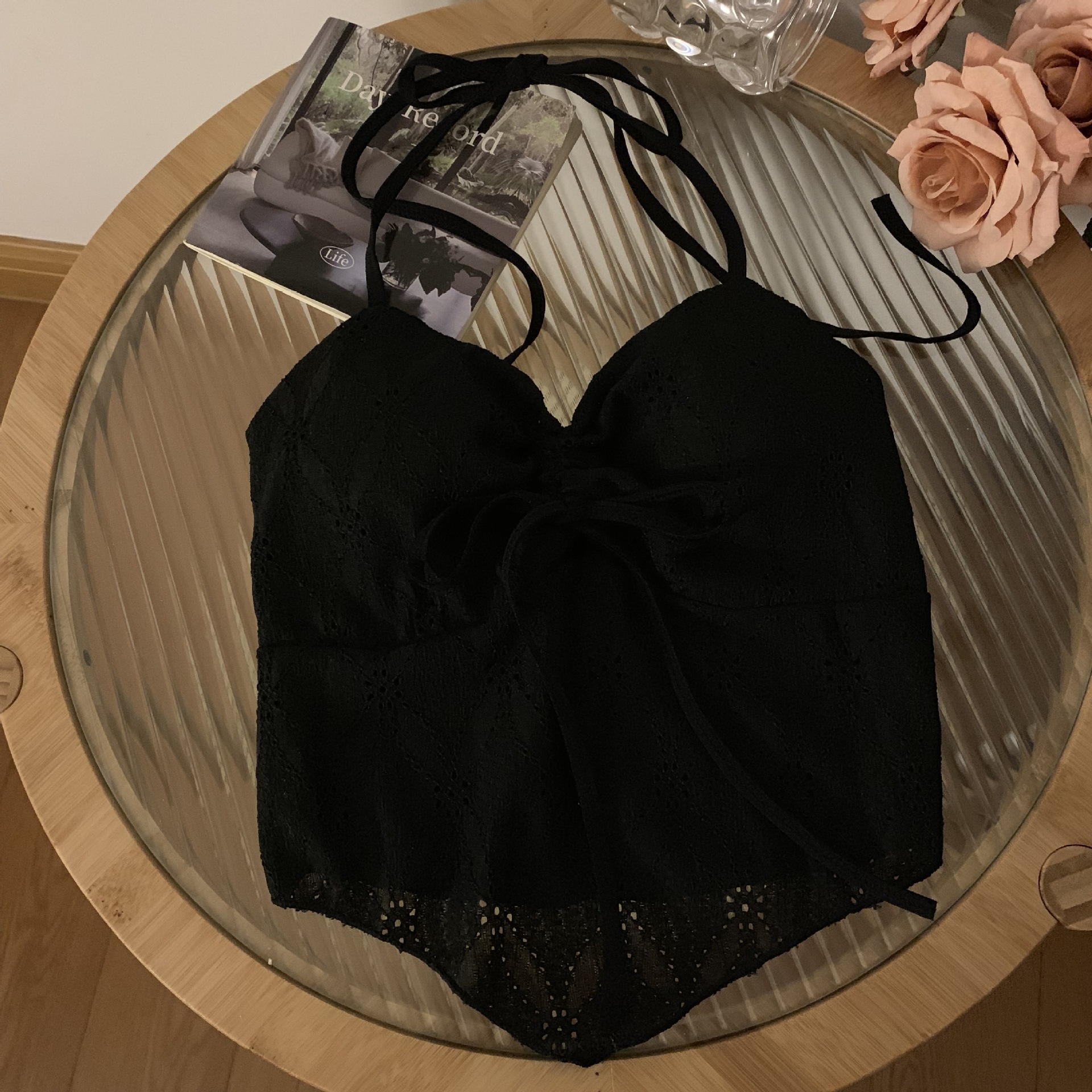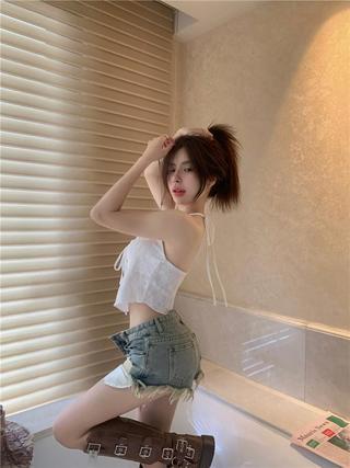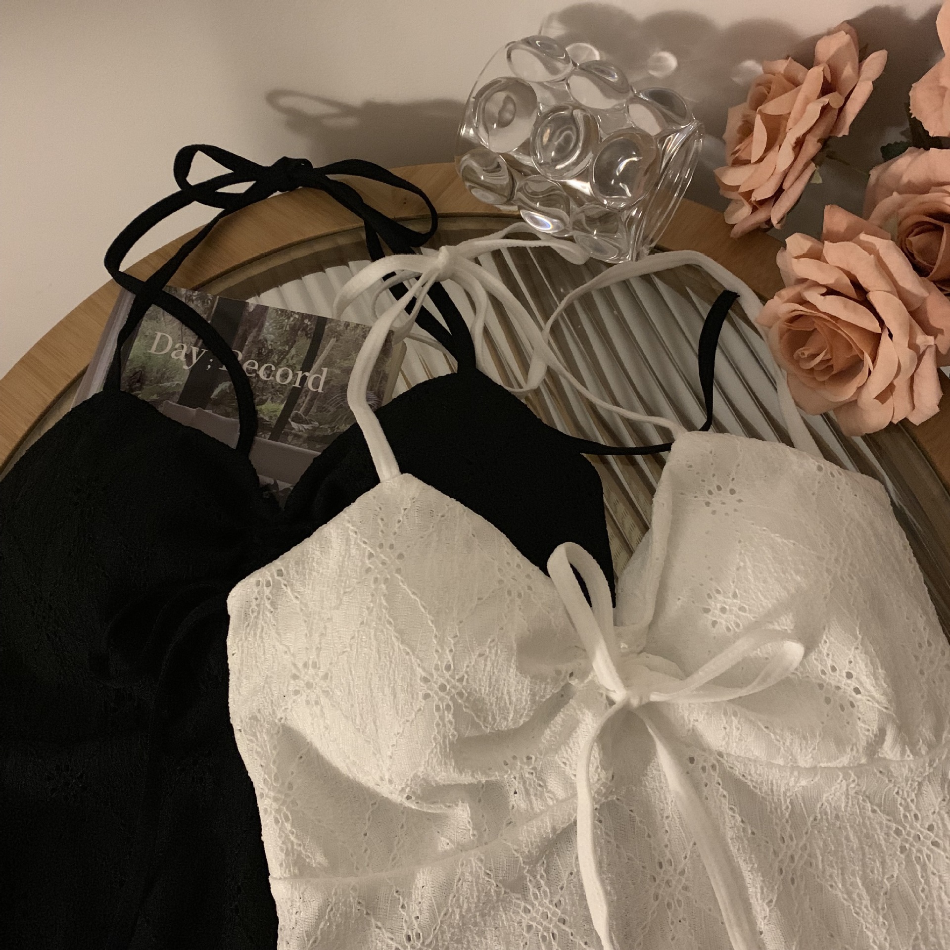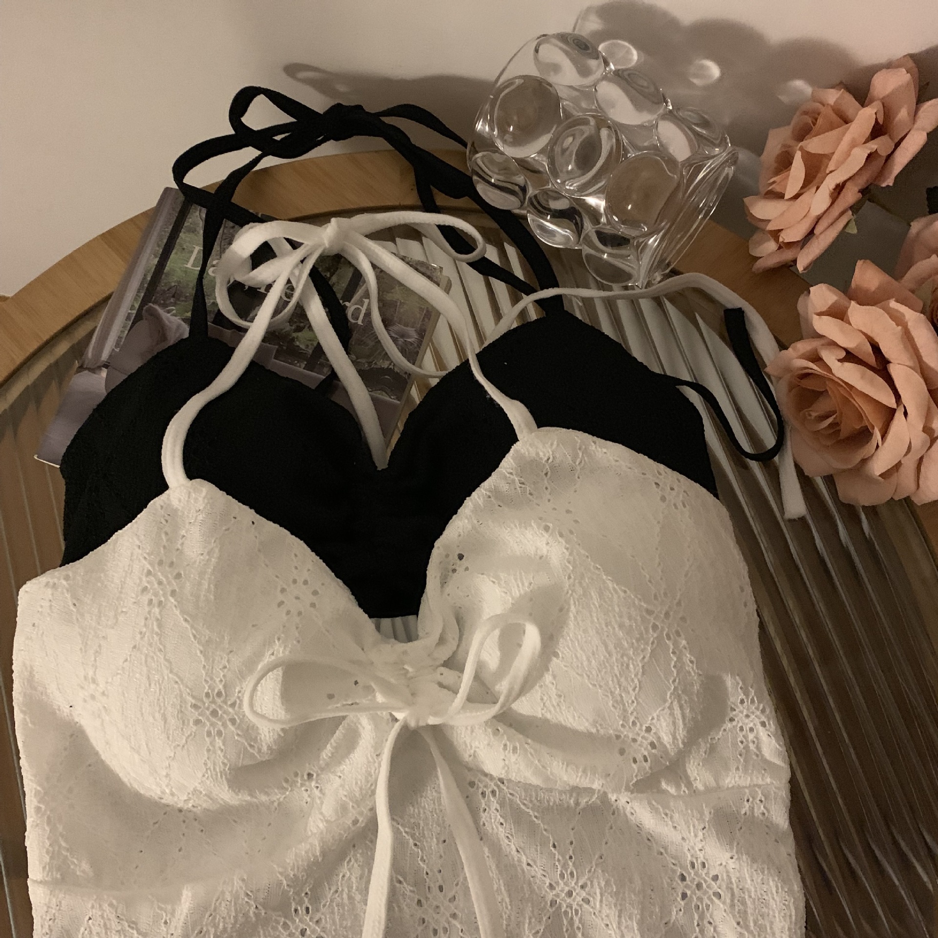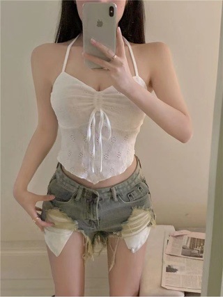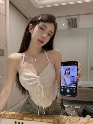 2024 순수한 욕망 레이스 넥 넥타이 로프 슬링 활 디자인 핫 소녀 가슴 패드 끈이없는 아름다운 백탑