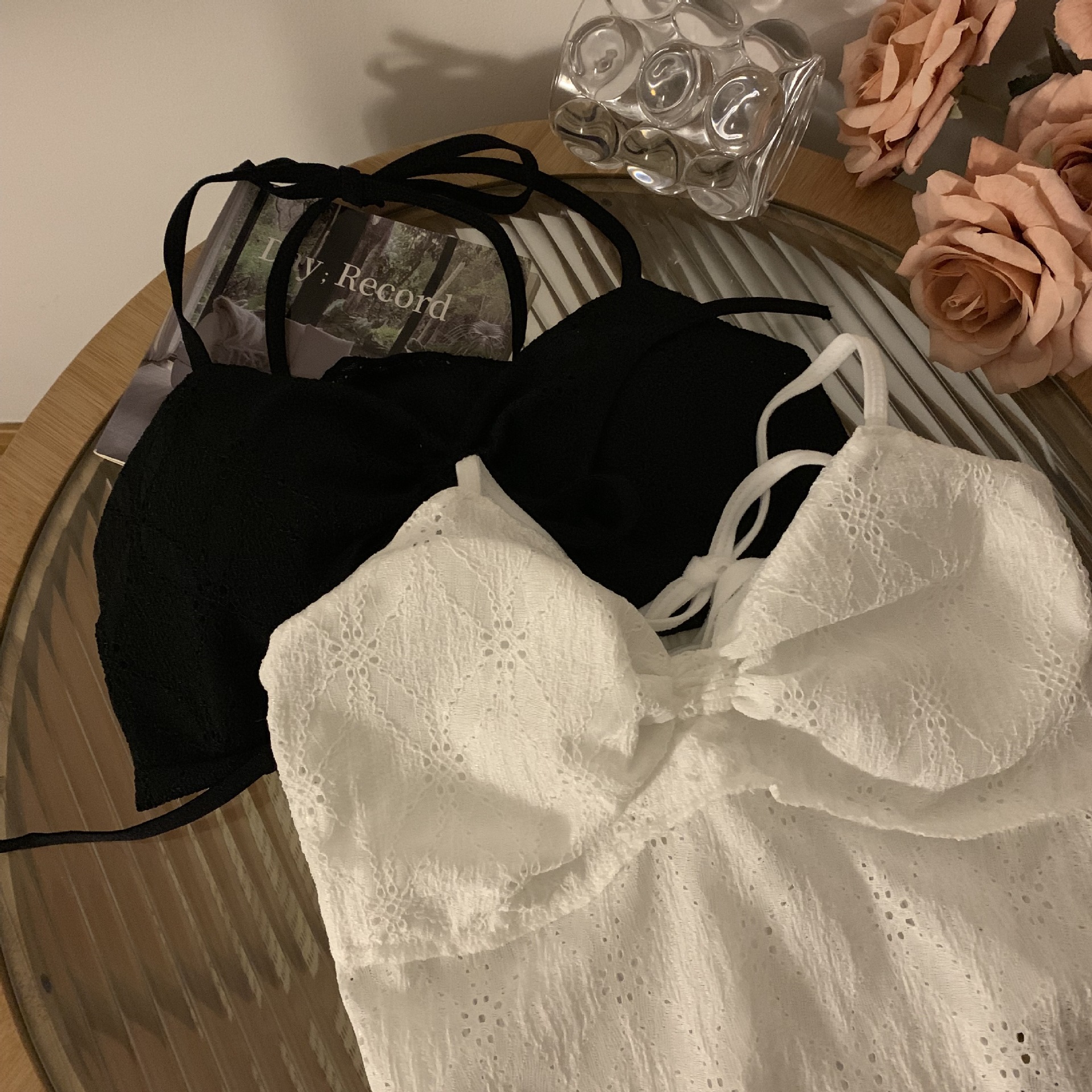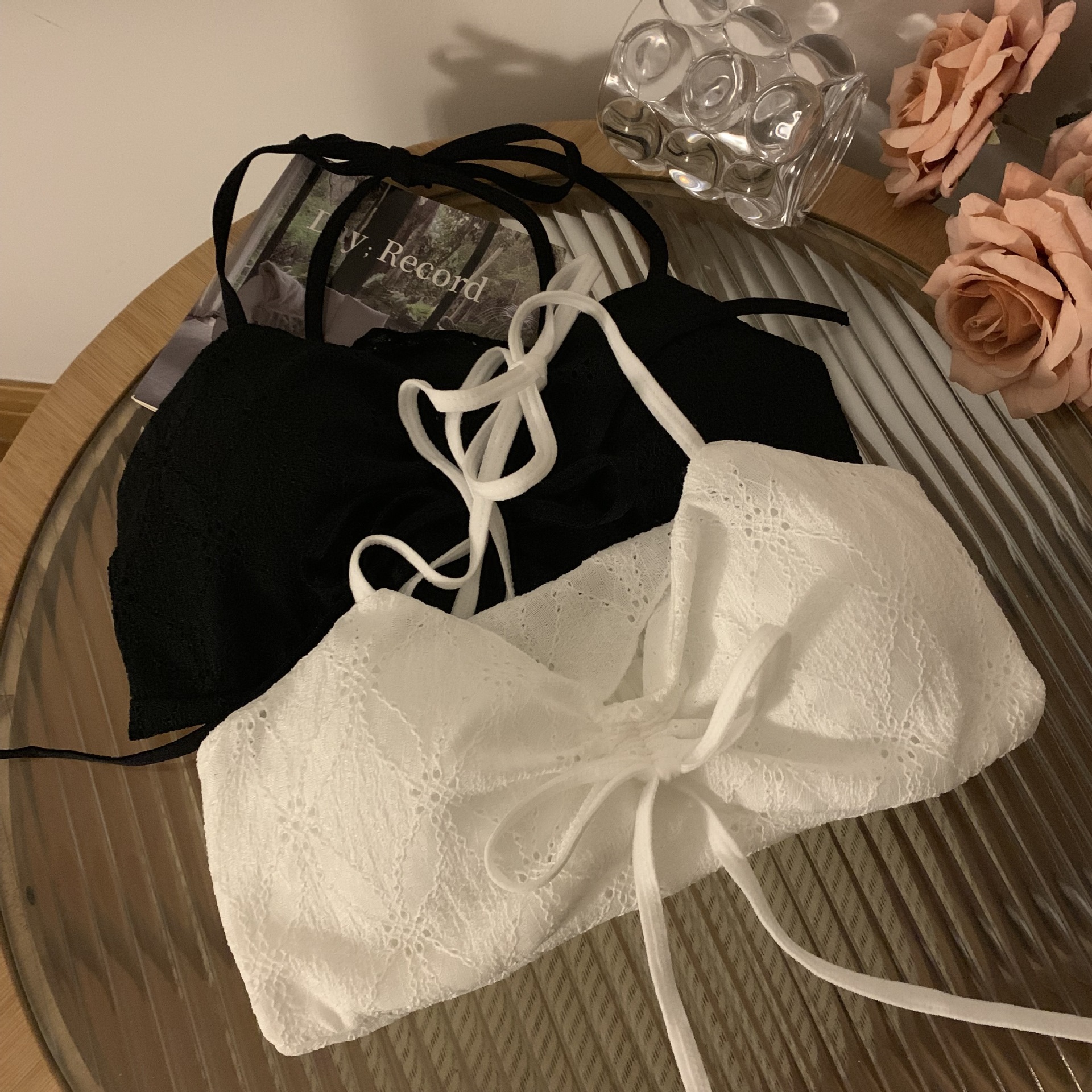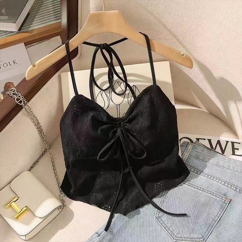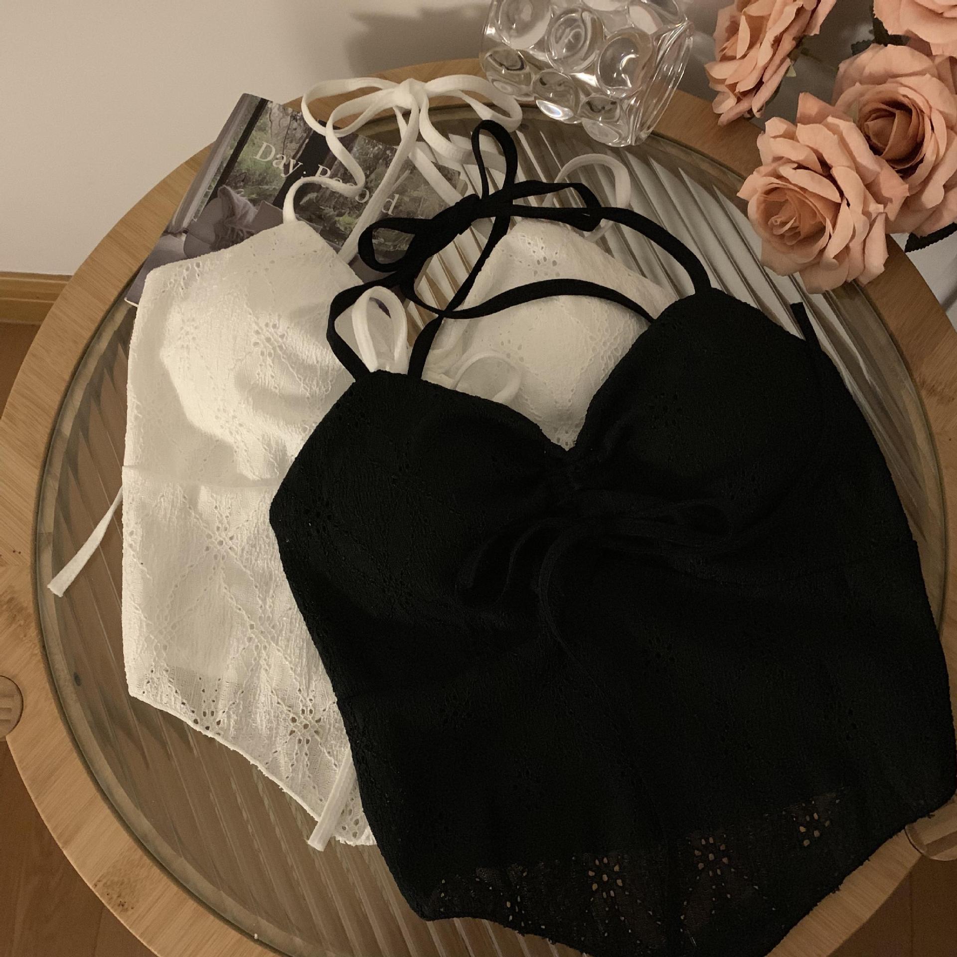 2024 순수한 욕망 레이스 넥 넥타이 로프 슬링 활 디자인 핫 소녀 가슴 패드 끈이없는 아름다운 백탑스토어 가기