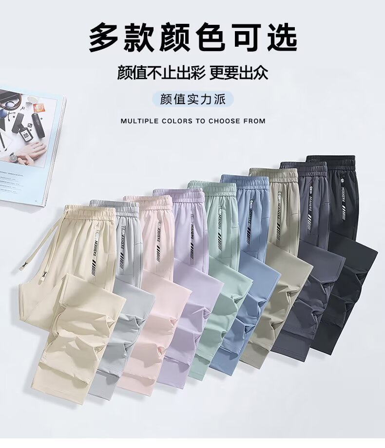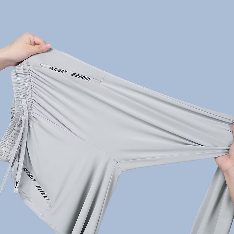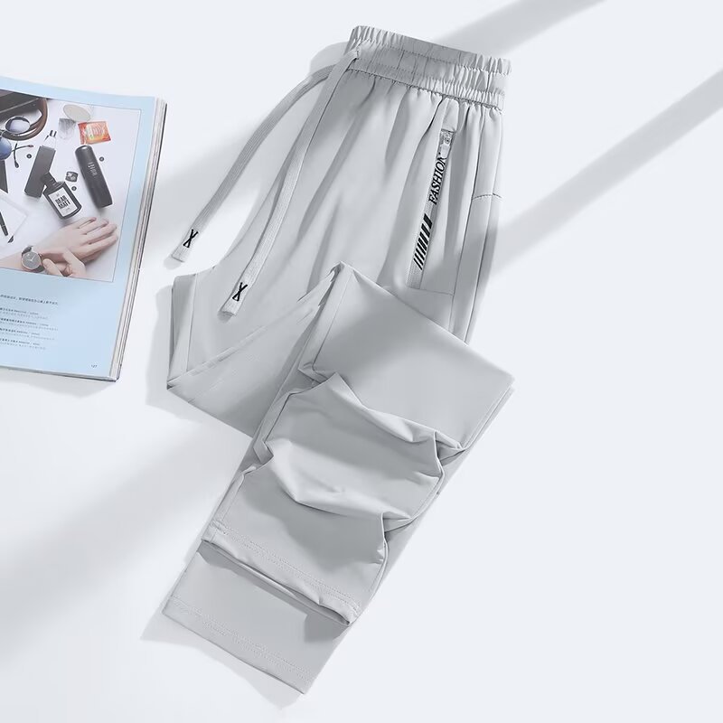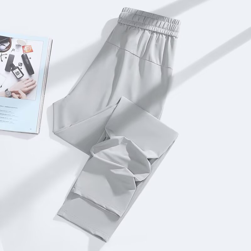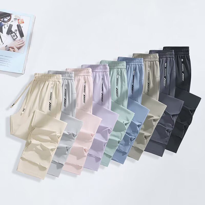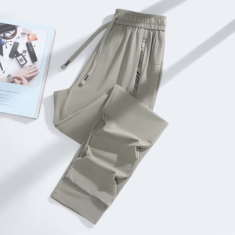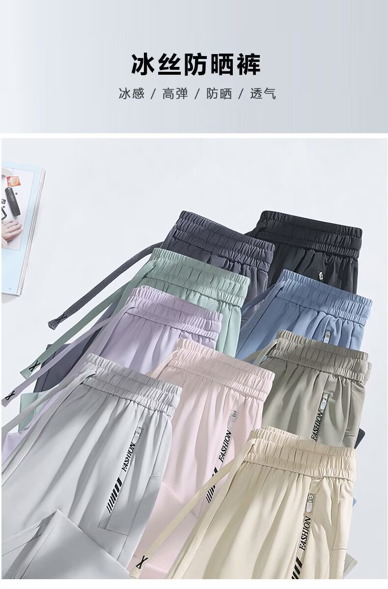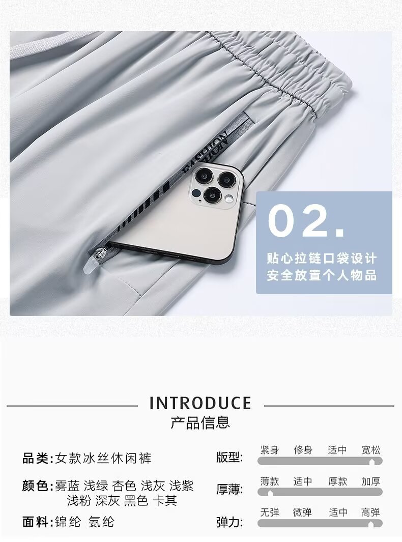 아이스 실크 쿨 편안한 캐주얼 스트레이트 통기성 얇은 슬리밍 포켓 지퍼 중간 허리 스포츠 빠른 건조 간단한 여성용 바지스토어 가기