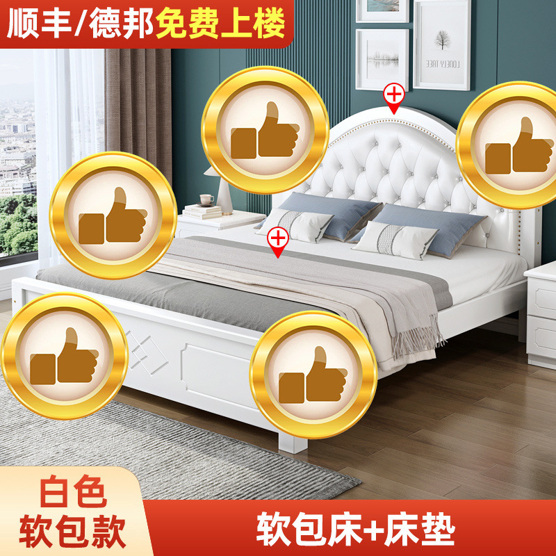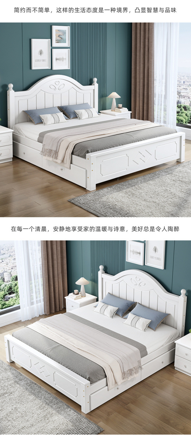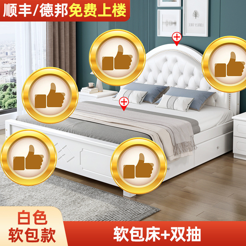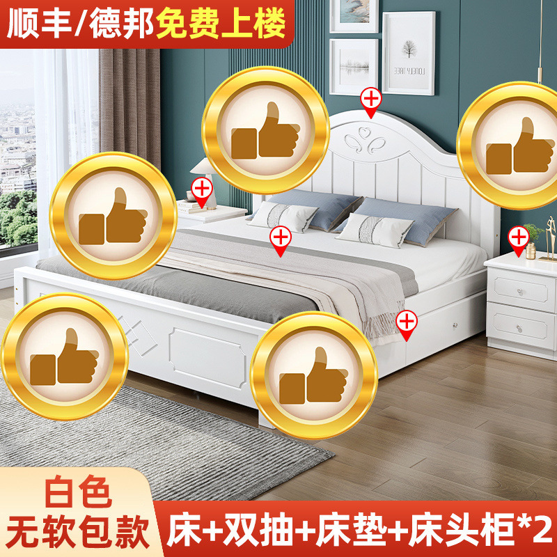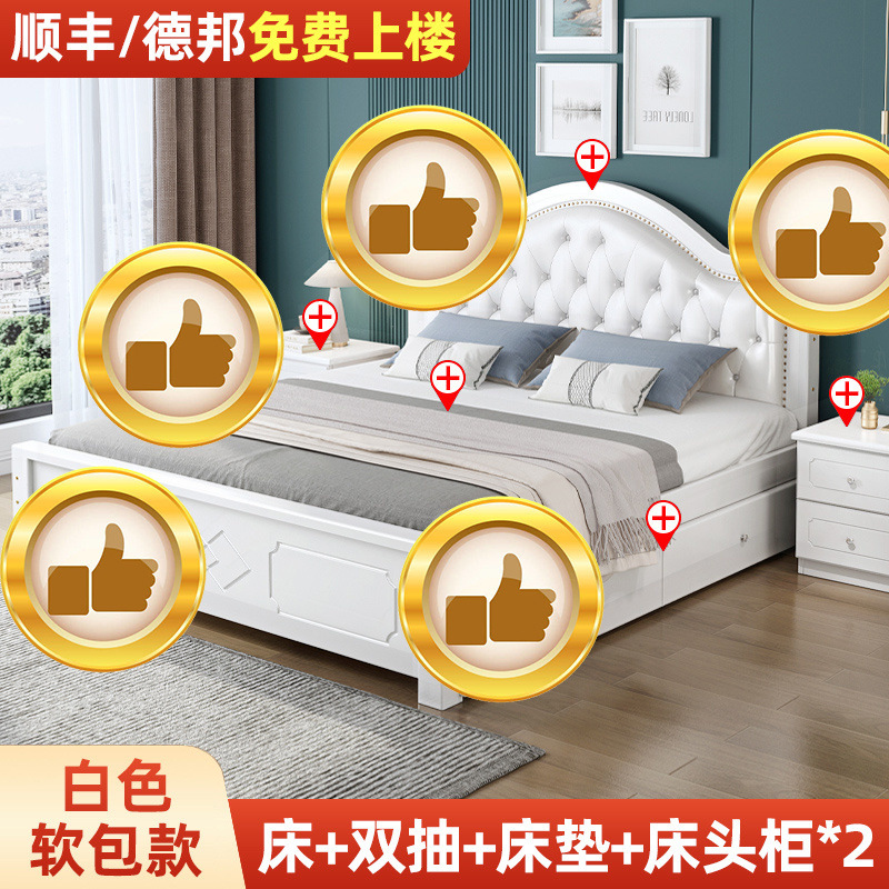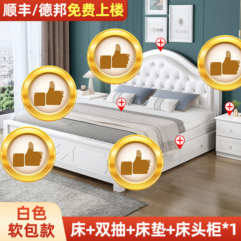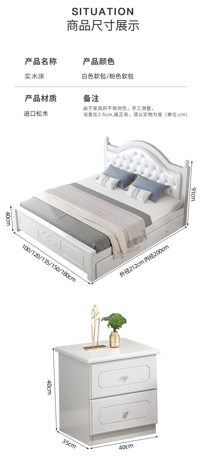 • ¤화이트 원목 소프트 침대 + 더블 서랍 + 캐비닛 * 1 + 무료 매트리스 --- Chengtai 공장