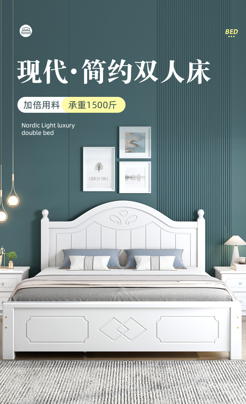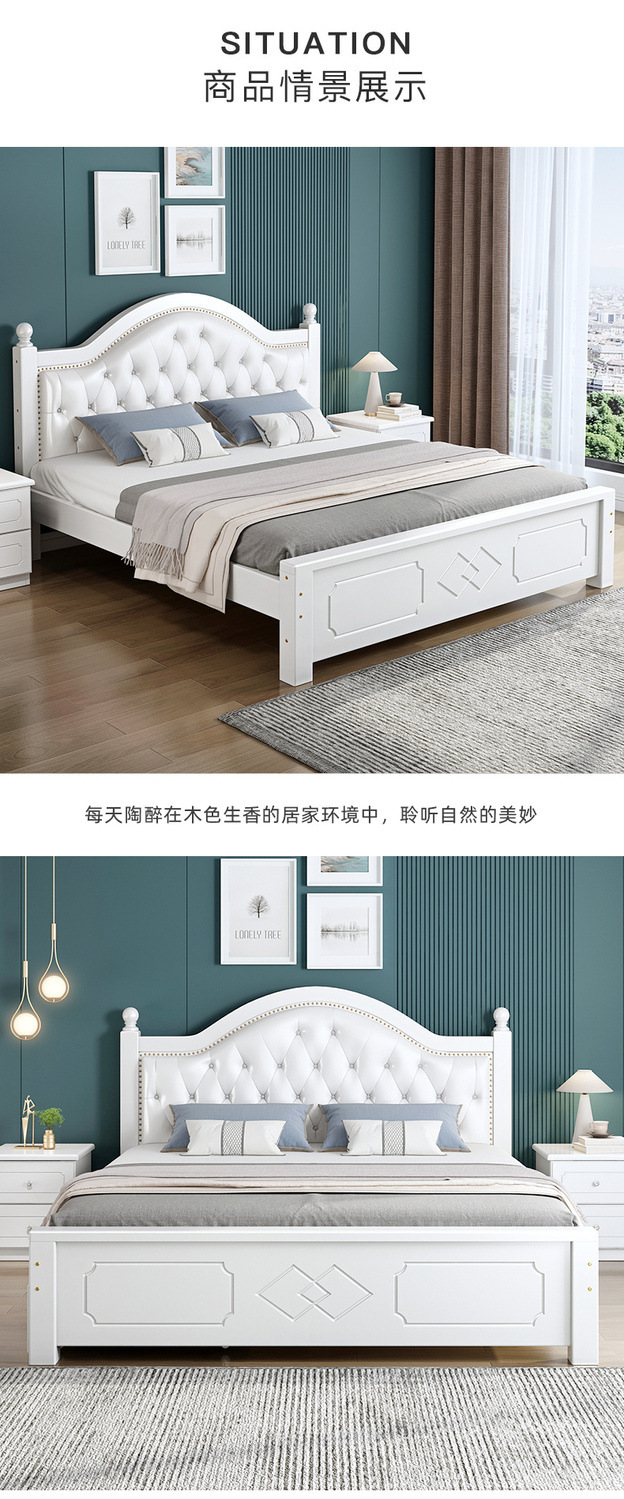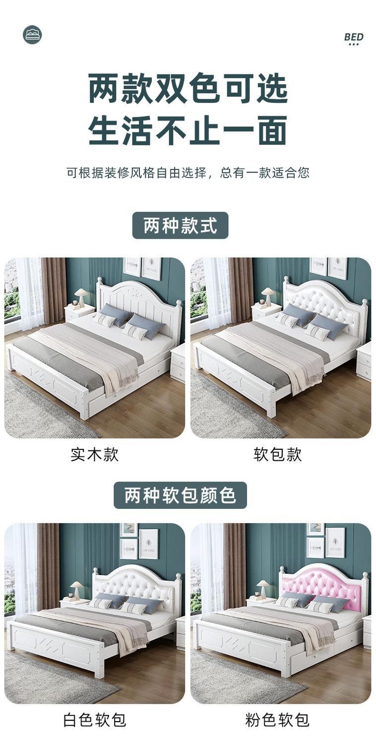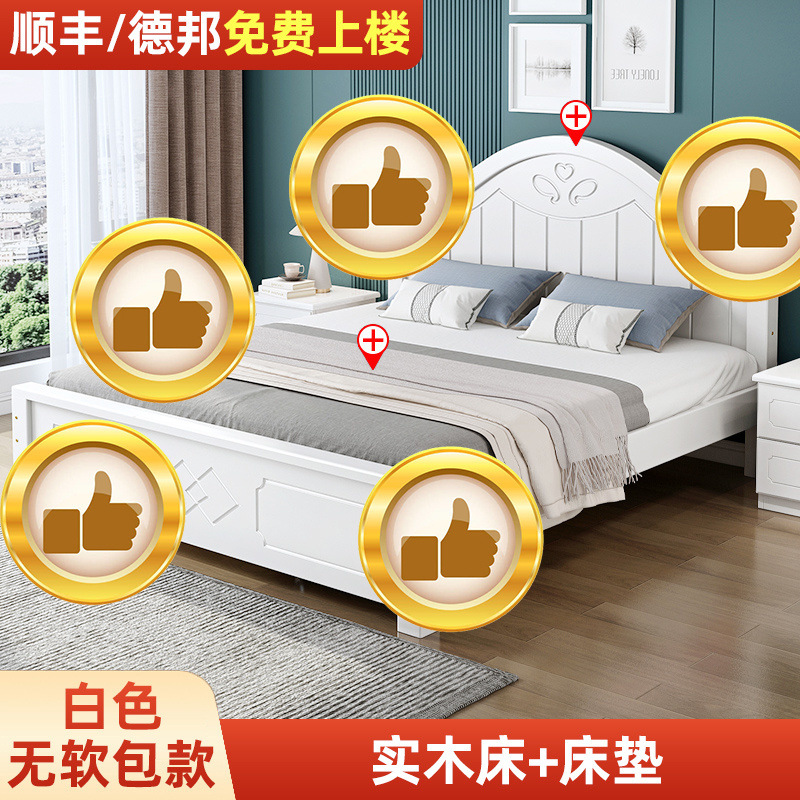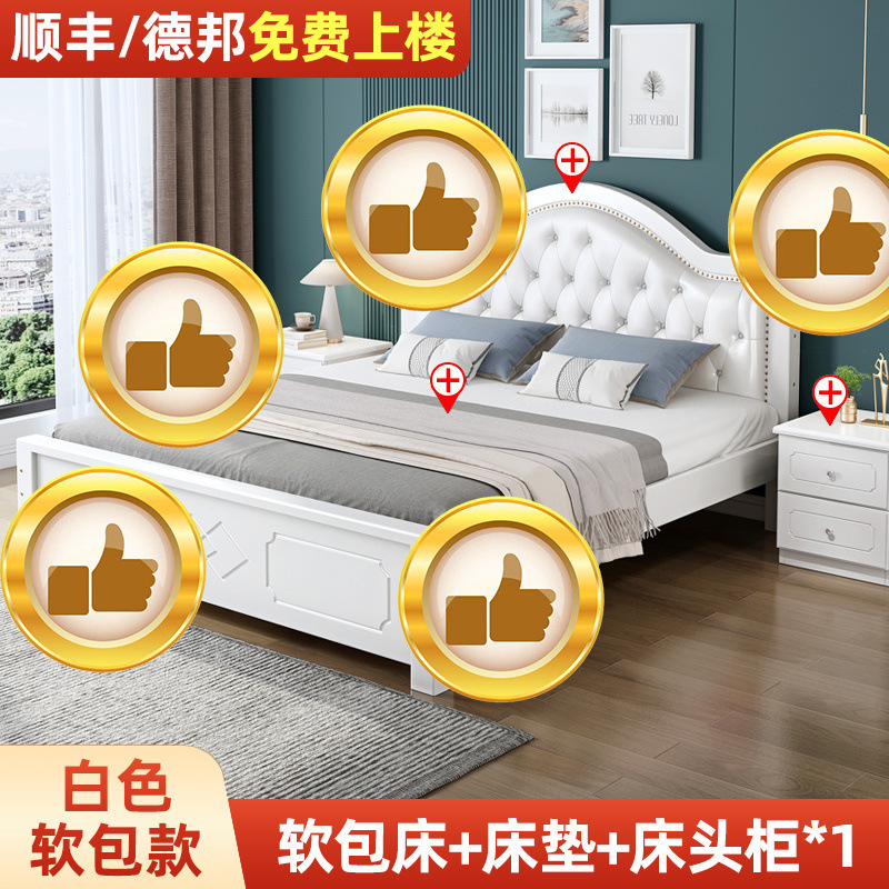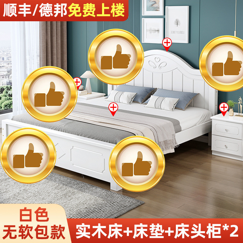 • ¤화이트 원목 소프트 침대 + 더블 서랍 + 캐비닛 * 1 + 무료 매트리스 --- Chengtai 공장