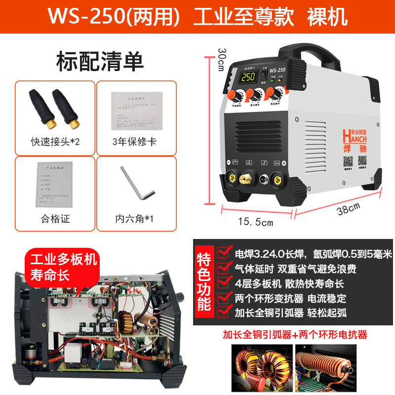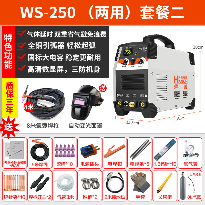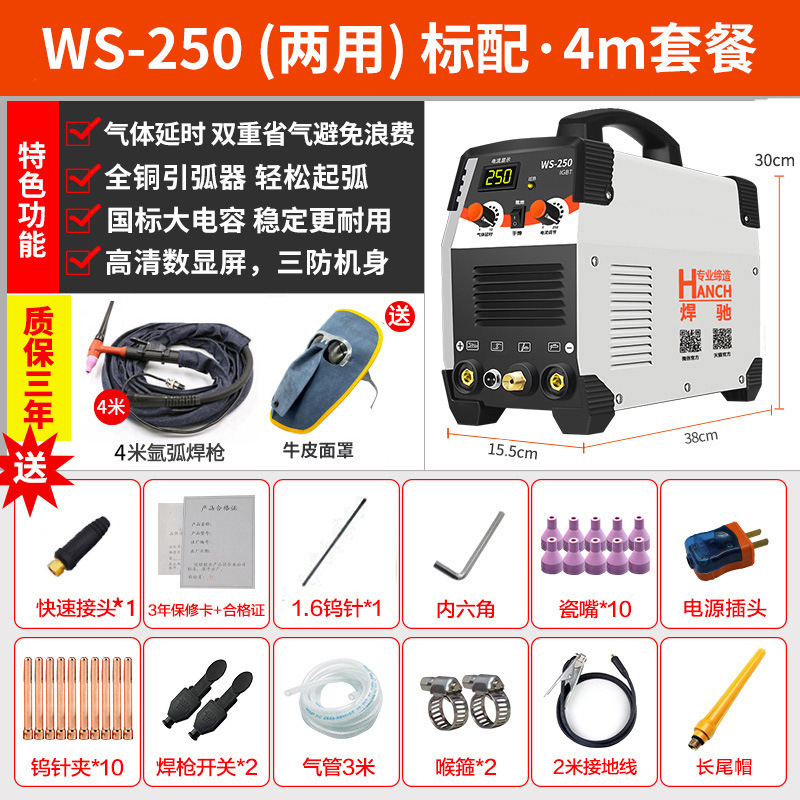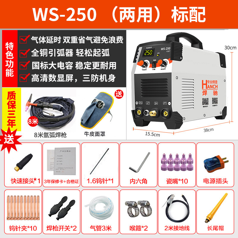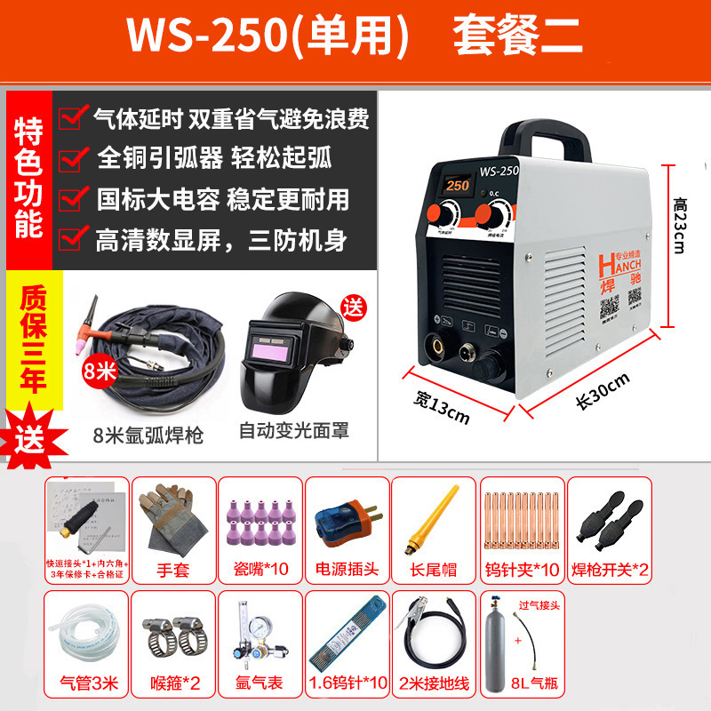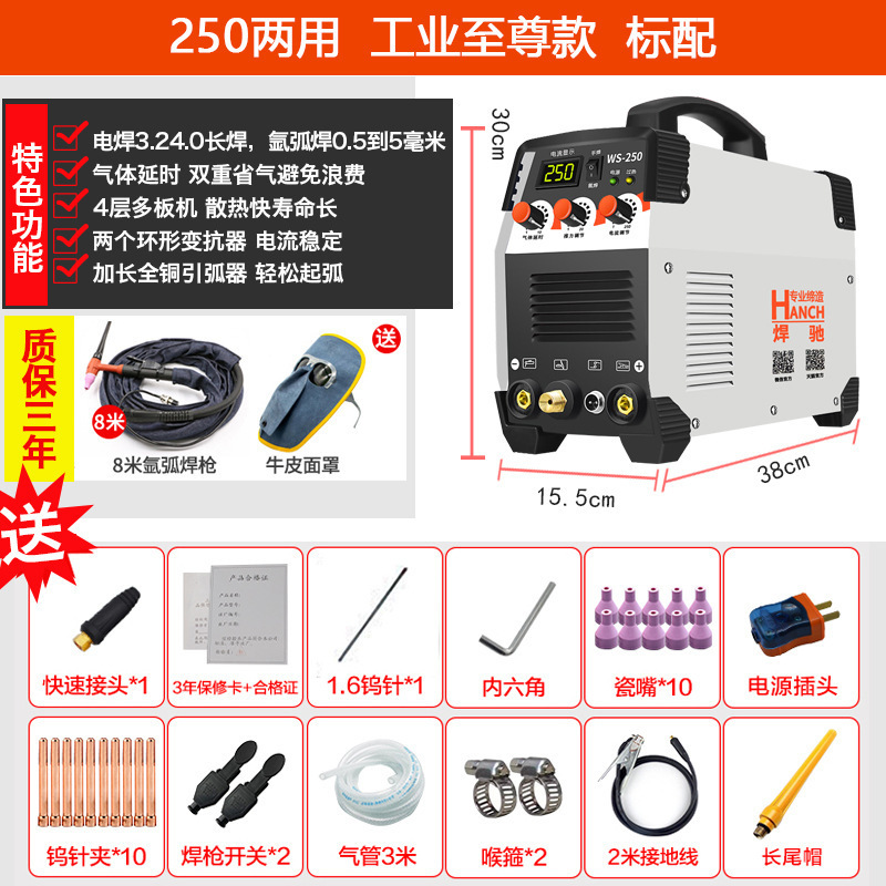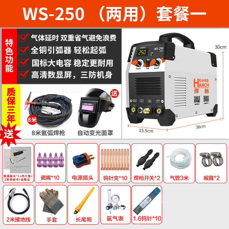 용접 치 WS-250 아르곤 아크 용접 기계 스테인레스 스틸 220v 가정용 소형 고출력 아르곤 아크 용접 이중 목적 산업 등급스토어 가기