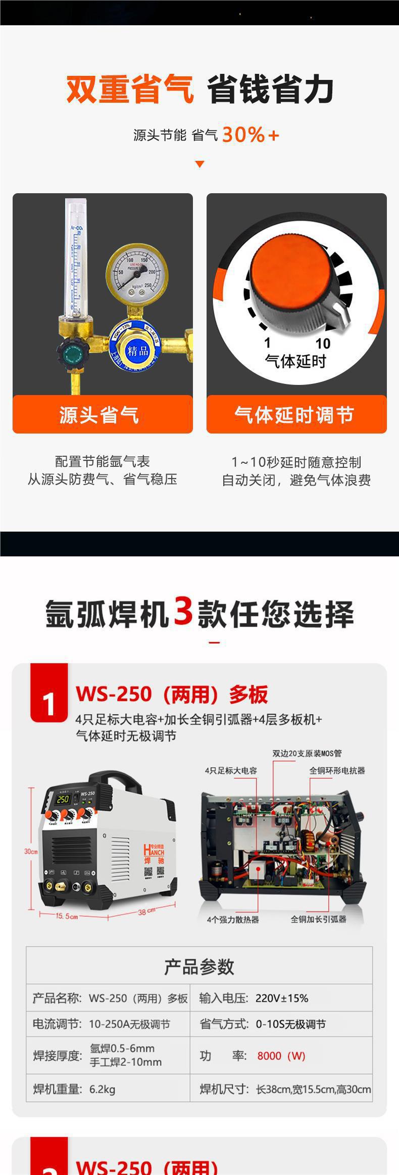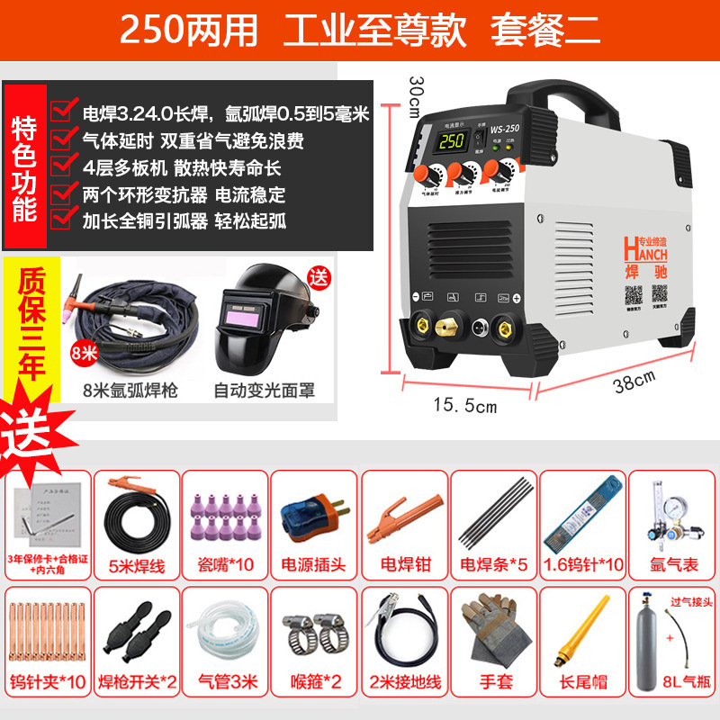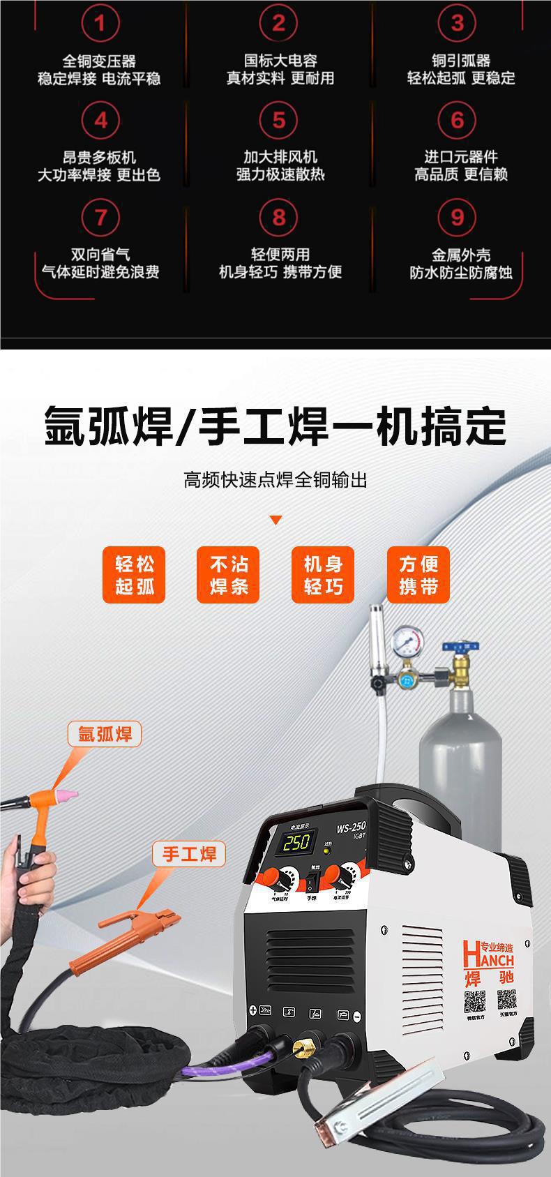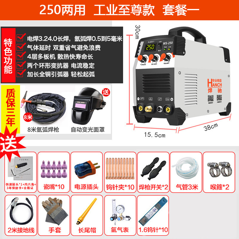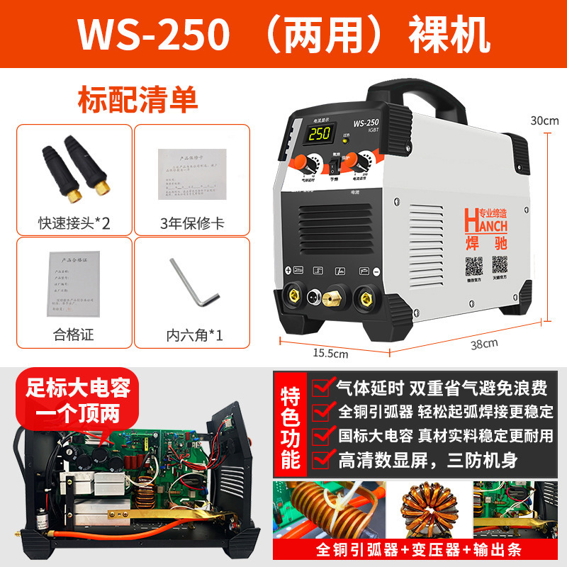 용접 치 WS-250 아르곤 아크 용접 기계 스테인레스 스틸 220v 가정용 소형 고출력 아르곤 아크 용접 이중 목적 산업 등급스토어 가기