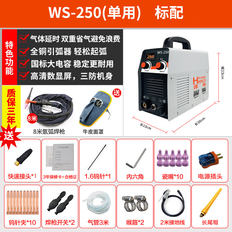 용접 치 WS-250 아르곤 아크 용접 기계 스테인레스 스틸 220v 가정용 소형 고출력 아르곤 아크 용접 이중 목적 산업 등급