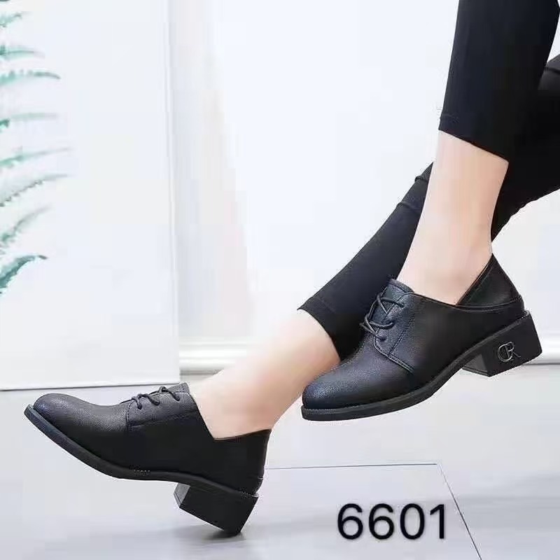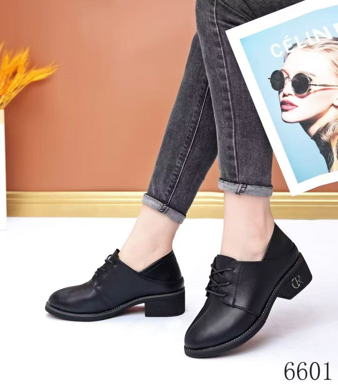 봄 새로운 영국 레이스 업 두꺼운 중년 어머니 검은 뾰족한 가죽 신발 유행 편안한 부드러운 가죽 여성 싱글 신발스토어 가기