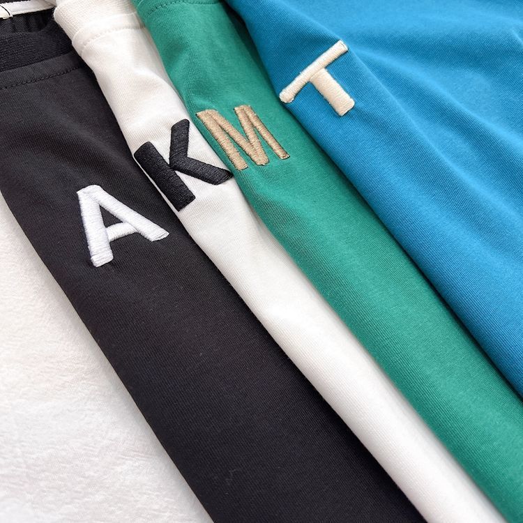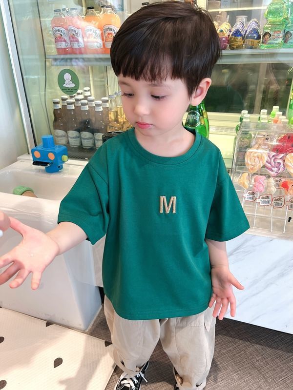 어린이 자수 간단한 반팔 서양식 소년 알파벳 순수 코튼 티셔츠 2025 여름 어린이 베이비 라운드 넥 셔츠스토어 가기