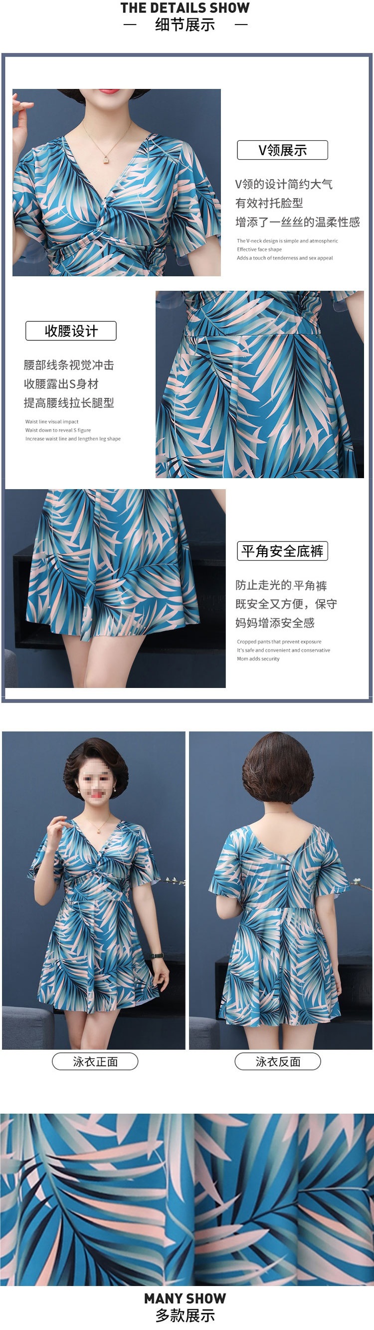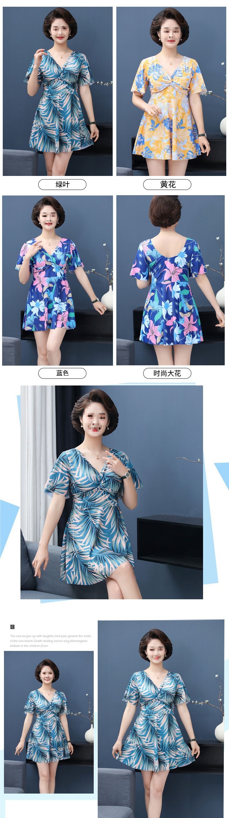 여성용 수영복, 엄마 스타일, 패셔너블, 중년 및 노년층, 플러스 사이즈, 보수적, 슬리밍, 배 커버, mm 스플릿 스커트 스타일 온천 수영복스토어 가기
