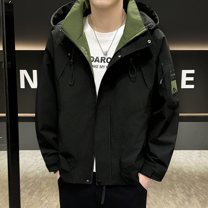 남성 충전 코트 봄과 가을 중간 길이 한국 버전 느슨한 모자 방수 재킷 캐주얼 소년 재킷 도매스토어 가기