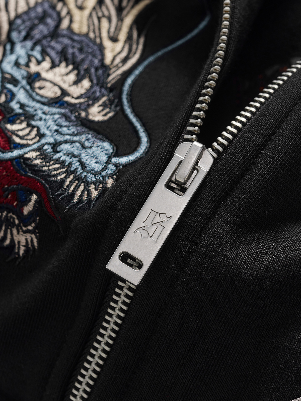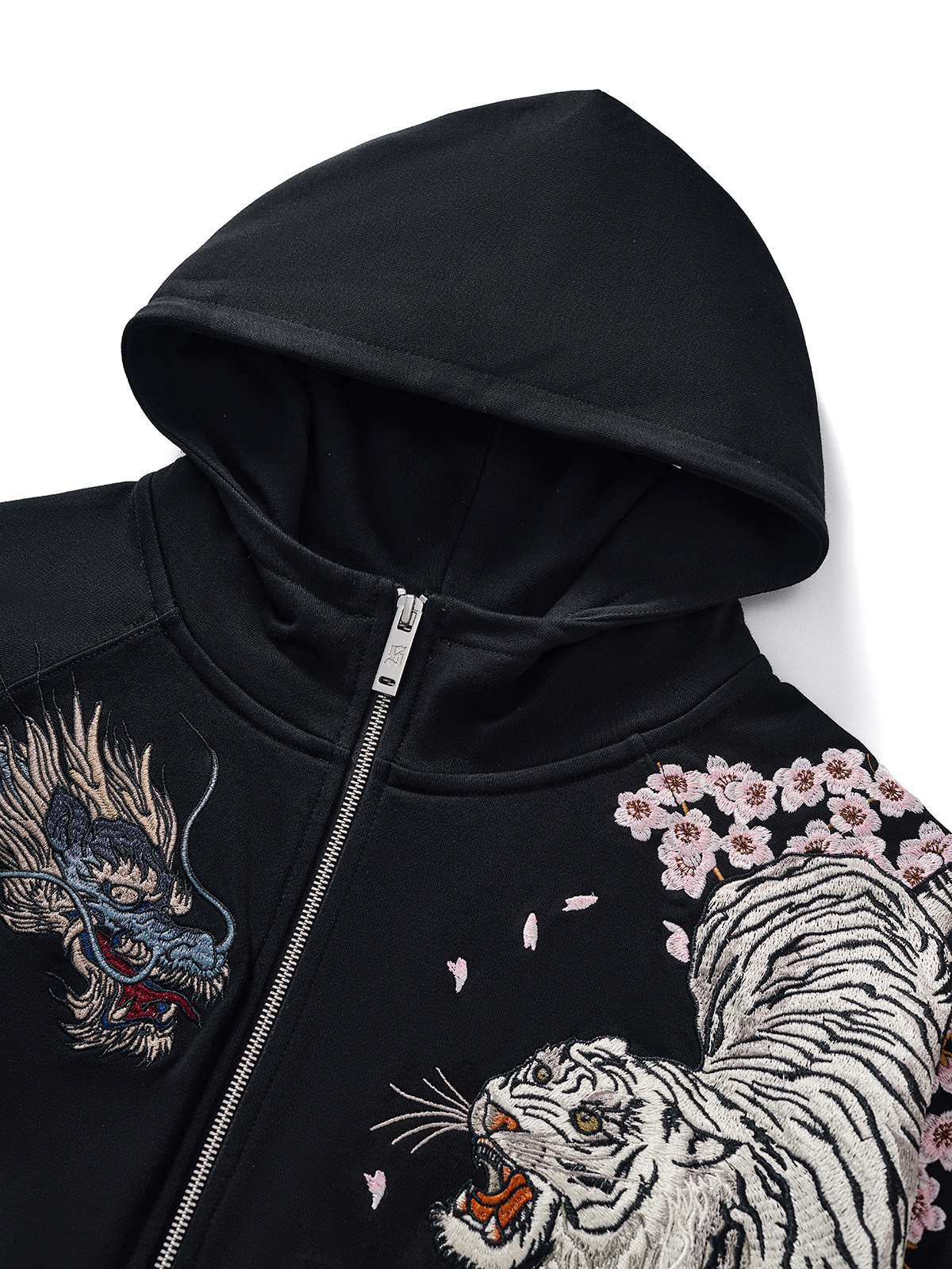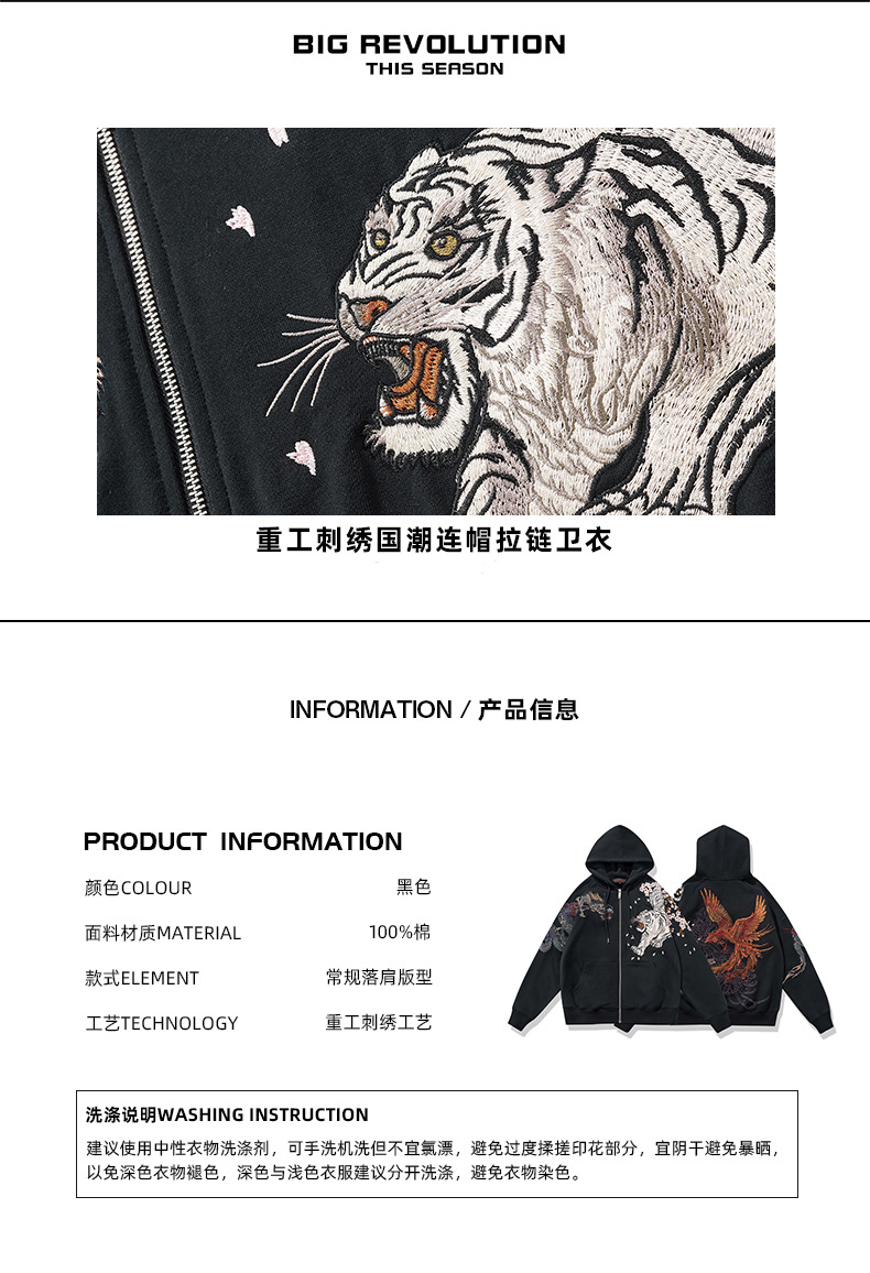 개구리 | 중국 스타일 자수 칭롱 화이트 타이거 무거운 산업 자수 후드 카디건 지퍼 스웨트 스트리트 힙합 재킷스토어 가기