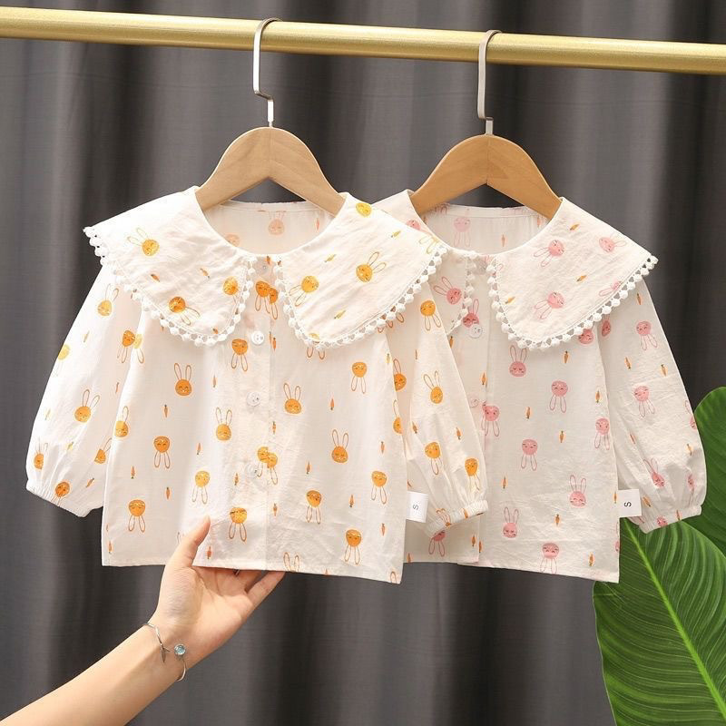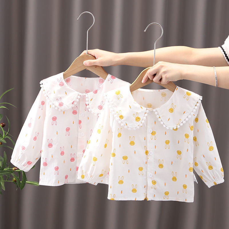 소녀의 천 랩 셔츠 아기의 서양식 작은 체리 봄과 가을 인형 셔츠베이스 카디건 베이비 화이트스토어 가기
