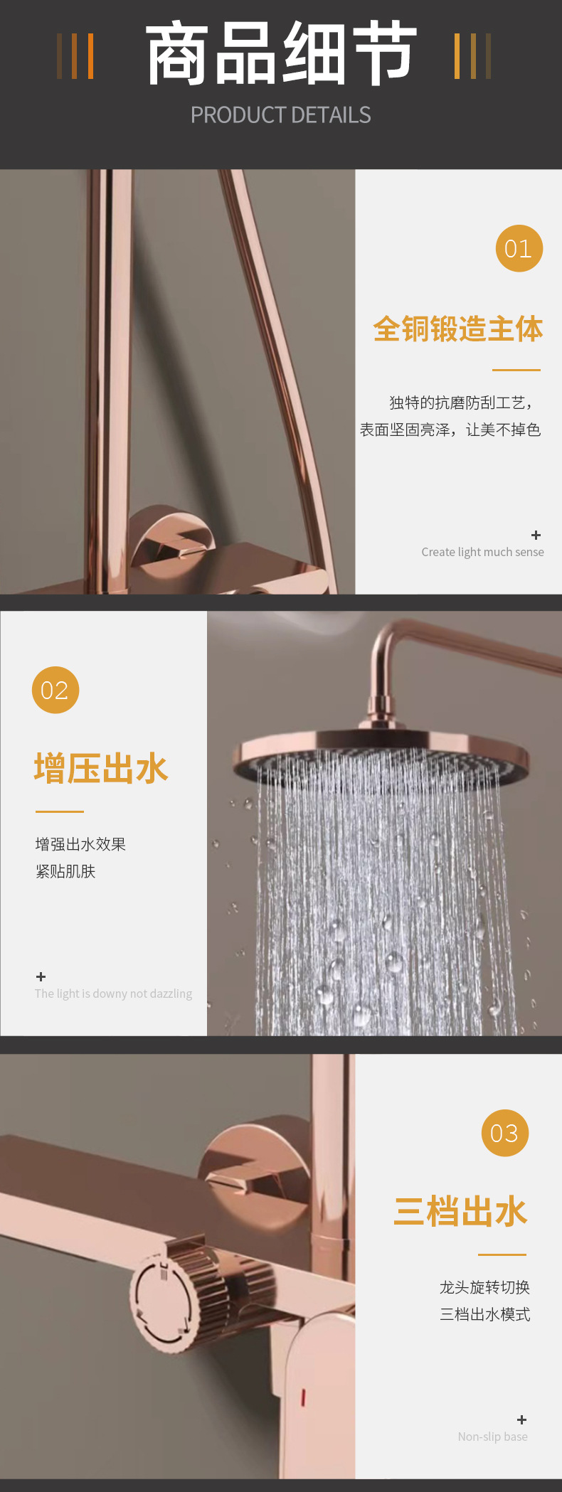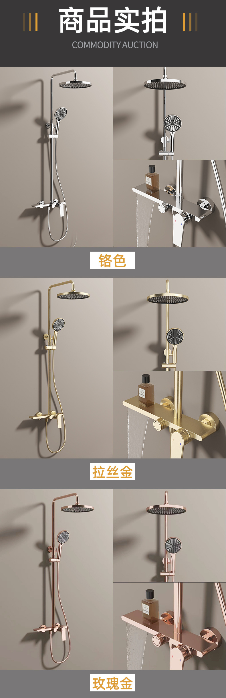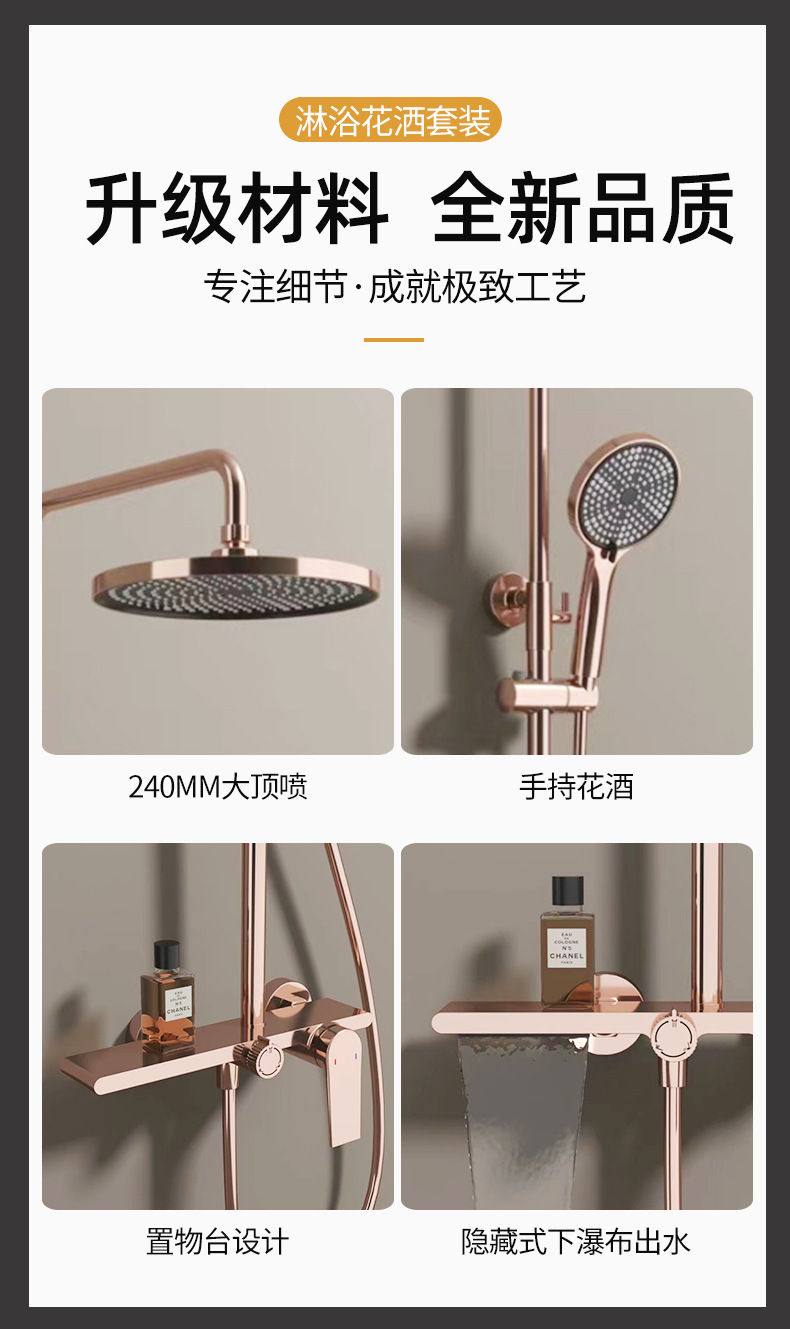 독일 MOSAI 모세 브러시 로즈 골드 샤워 세트 홈 골드 욕실 표면 장착 호텔 전체 구리스토어 가기