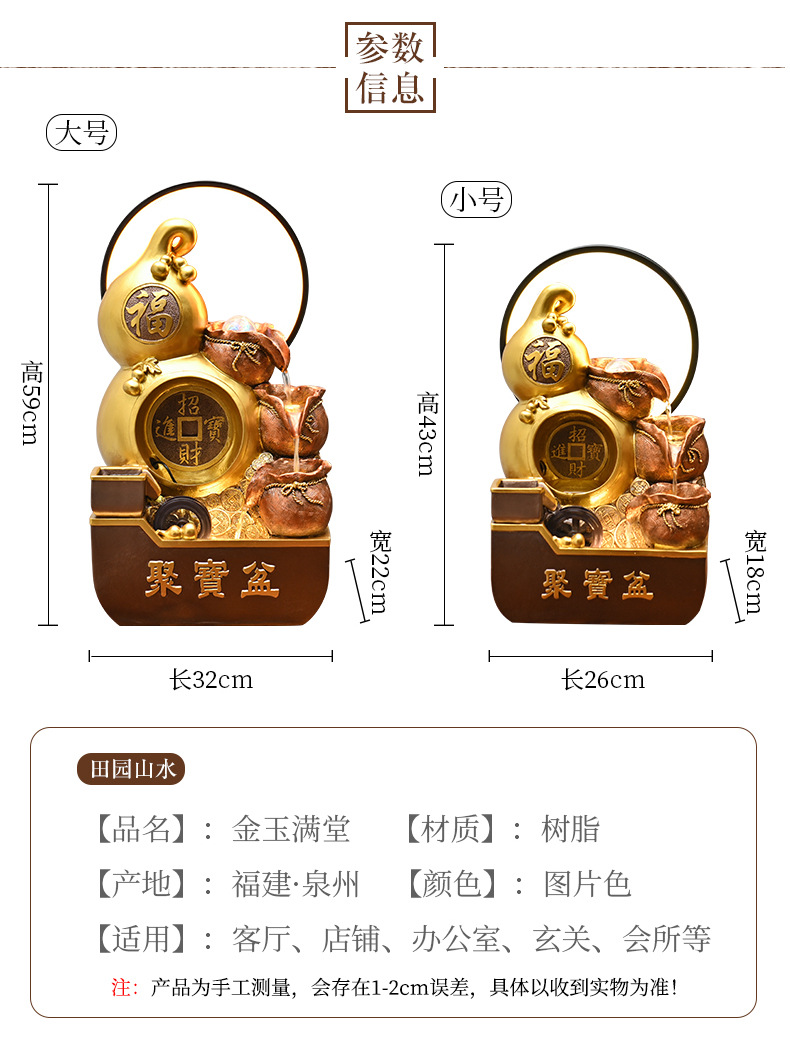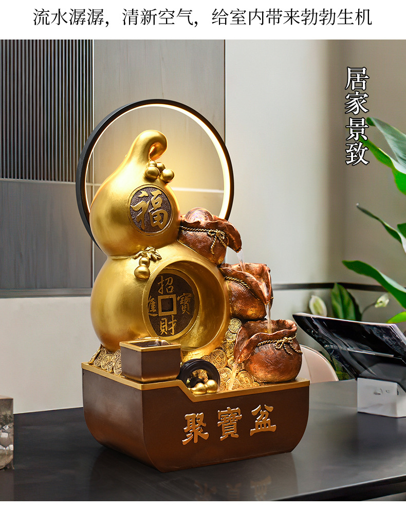 Fulu Shengcai Cornucopia 순환 물 분수 장식품 사무실 거실 데스크탑 입구 오프닝 선물스토어 가기