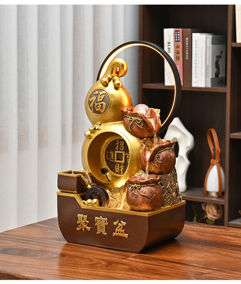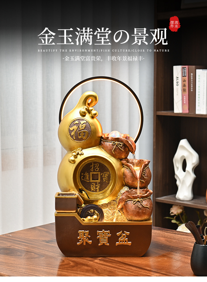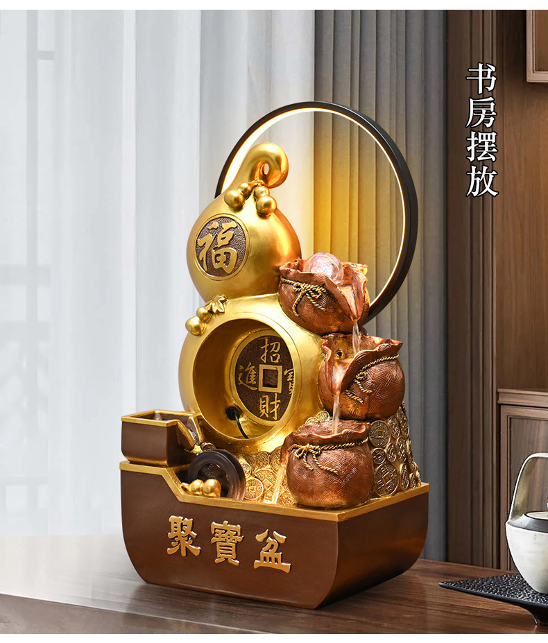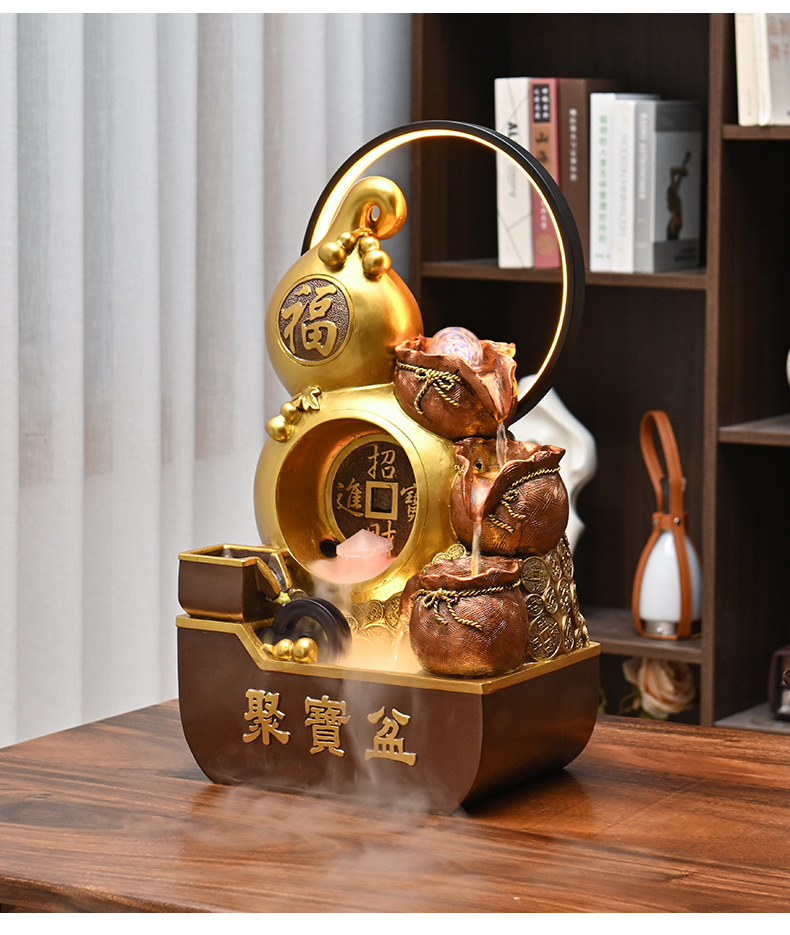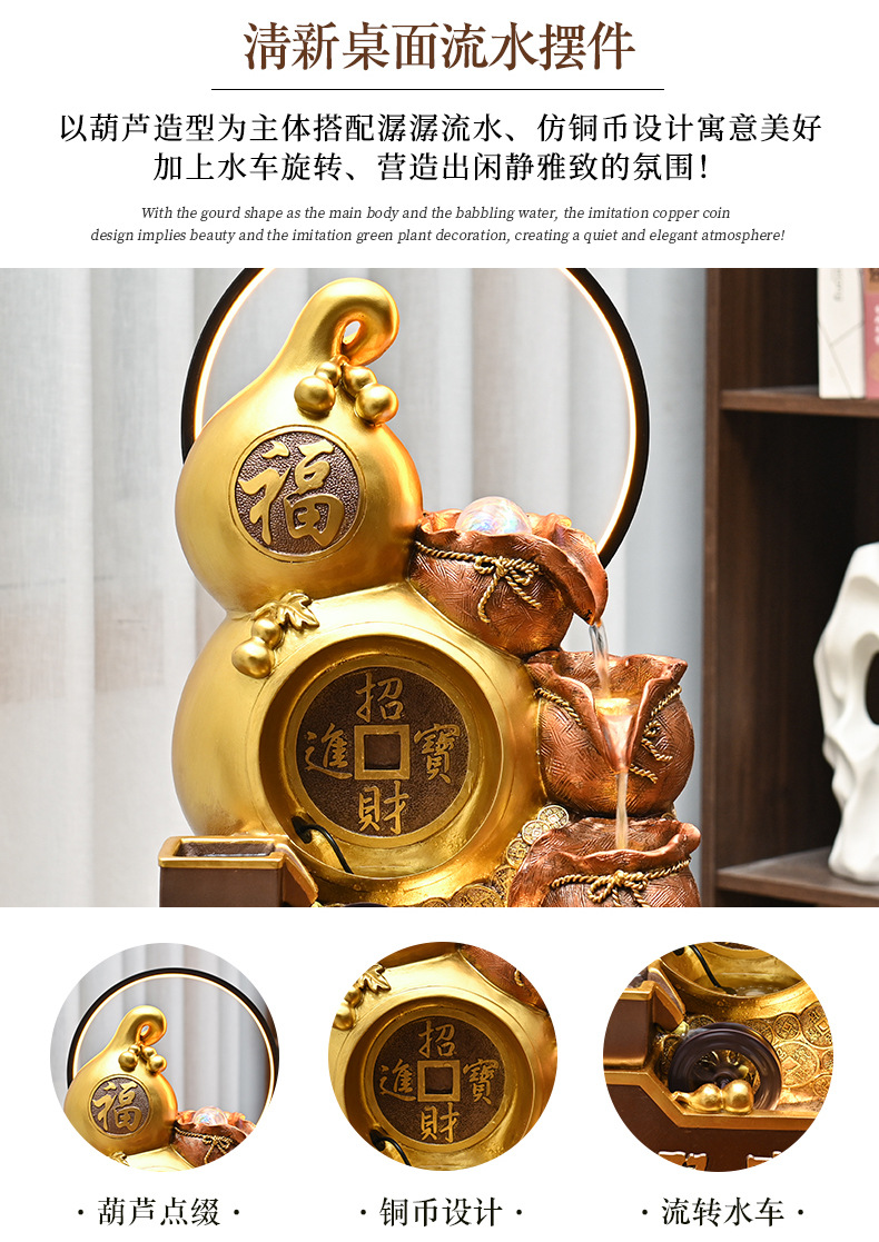 Fulu Shengcai Cornucopia 순환 물 분수 장식품 사무실 거실 데스크탑 입구 오프닝 선물