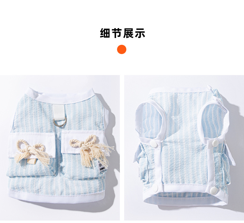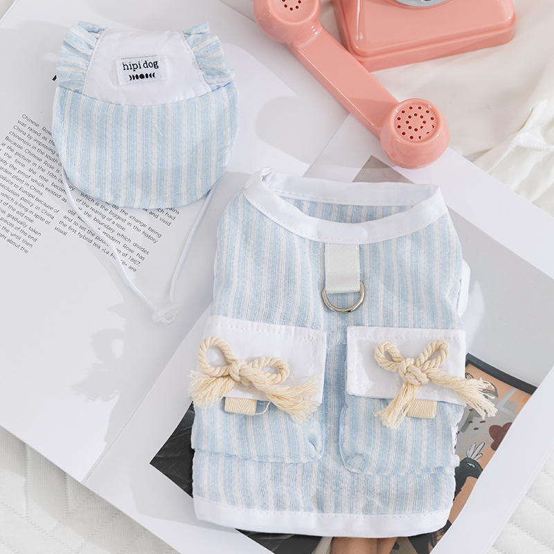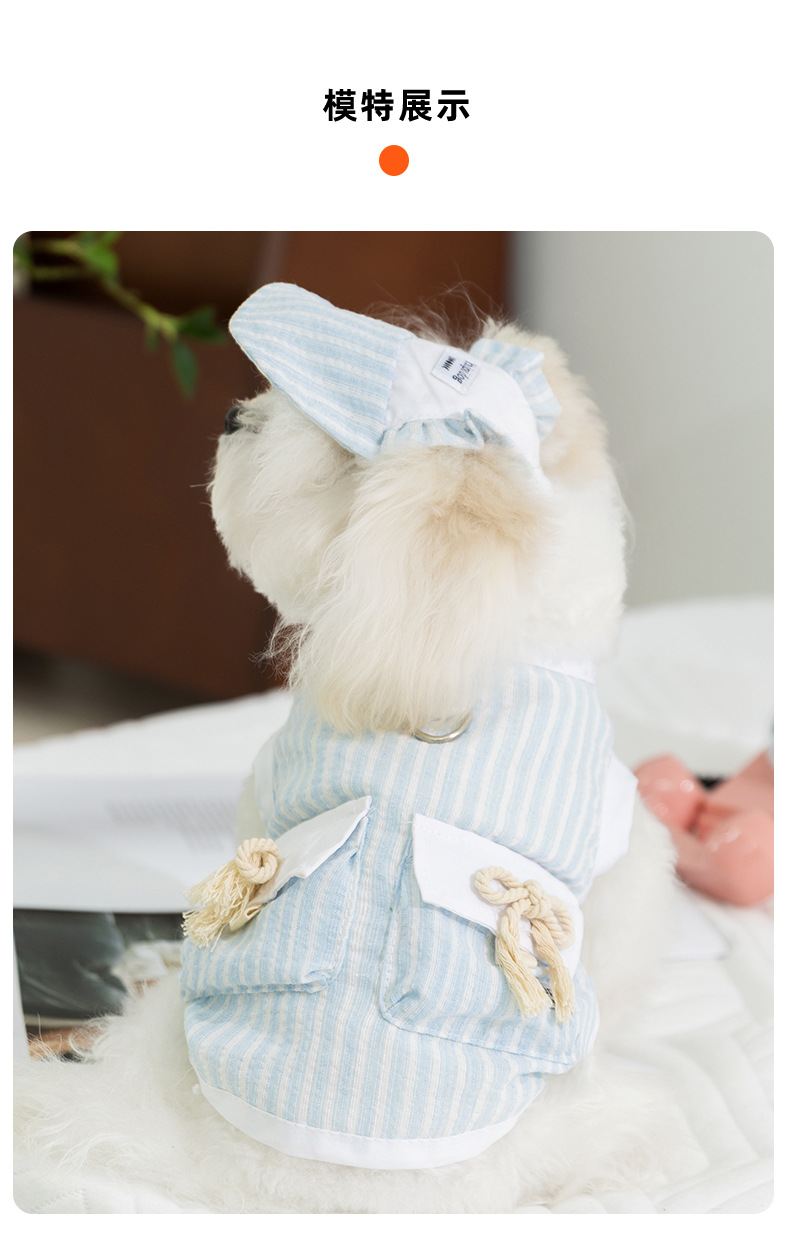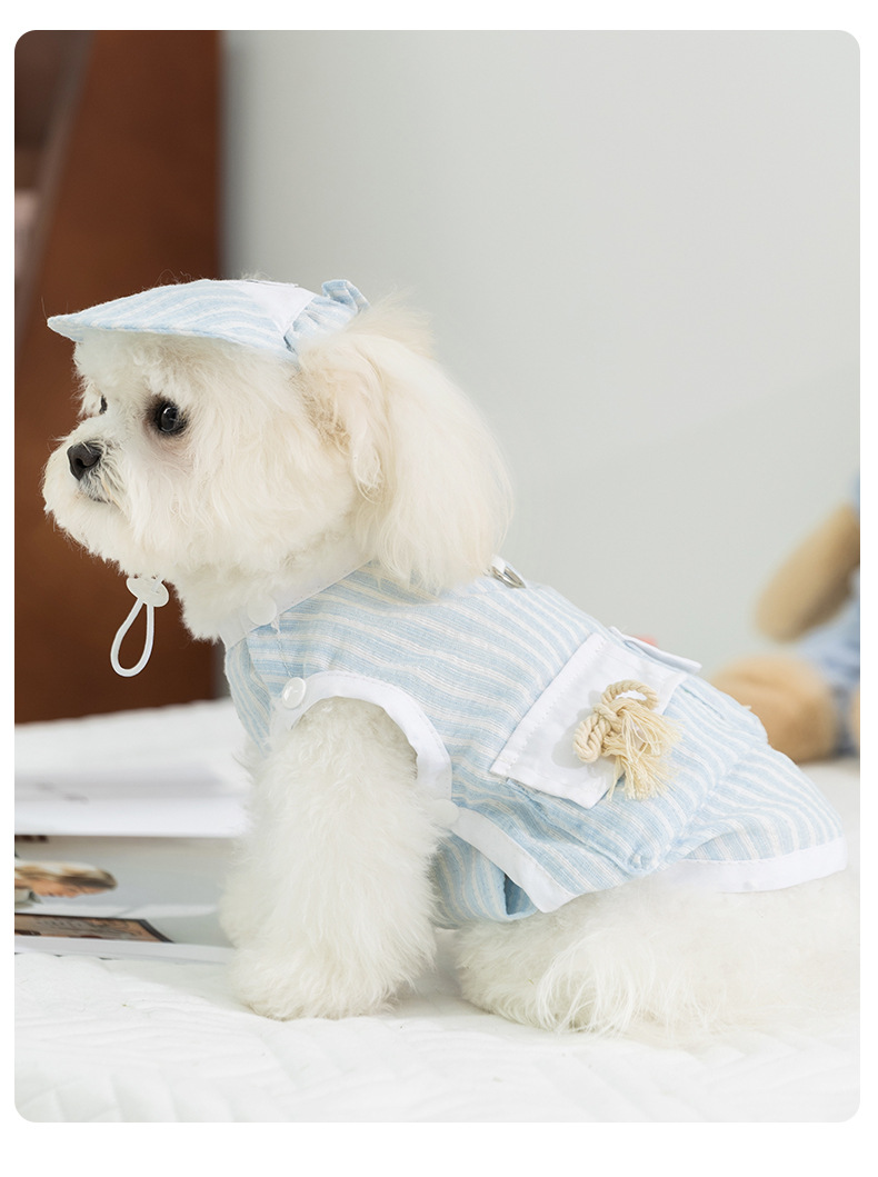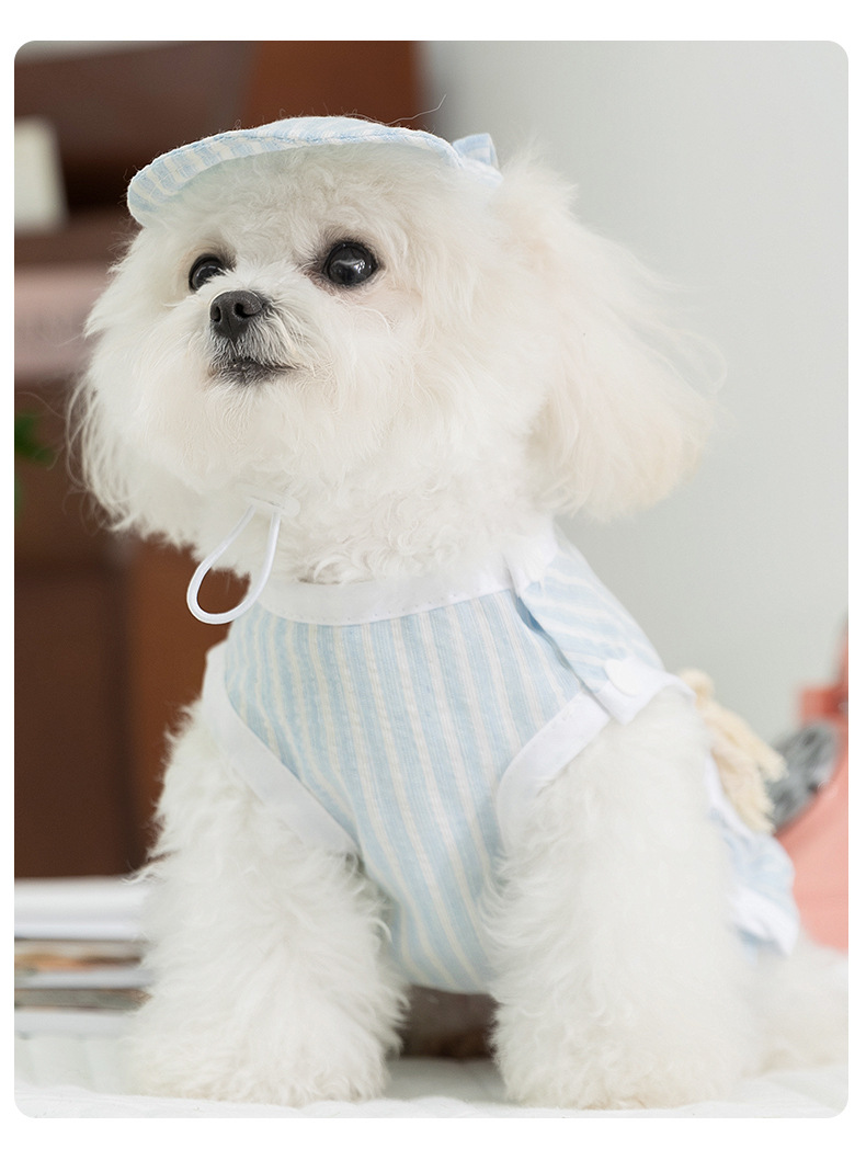 봄과 여름 개 옷 간단한 줄무늬 공주 조끼 얇은 두 다리 중형 개 테디 베어 애완 동물 옷스토어 가기