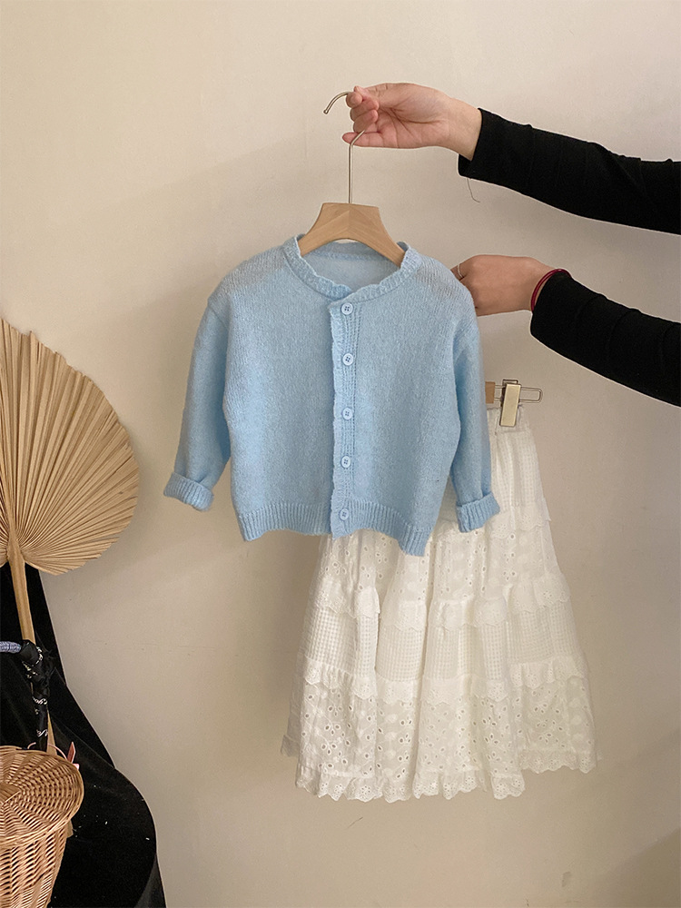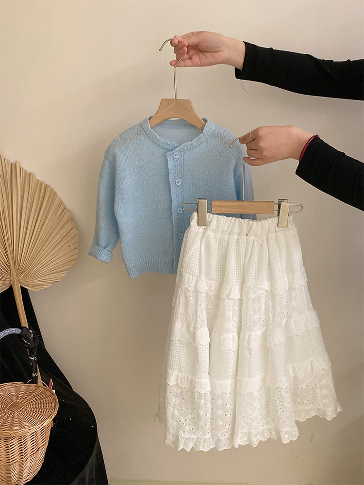 소녀 봄 새로운 레이스 니트 카디건 2025 봄 새로운 꽃 스커트 귀여운 달콤한 투피스 세트스토어 가기