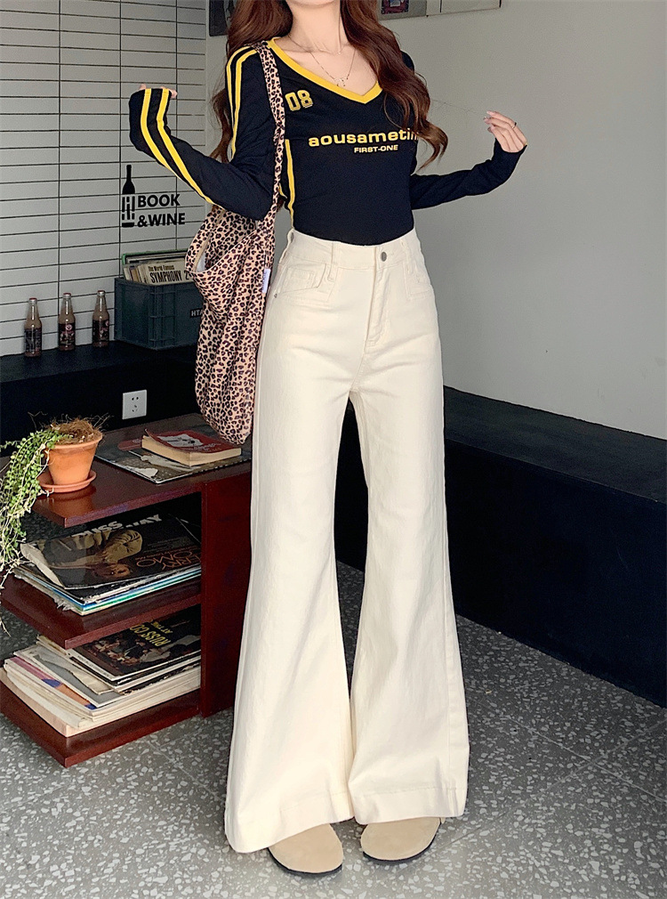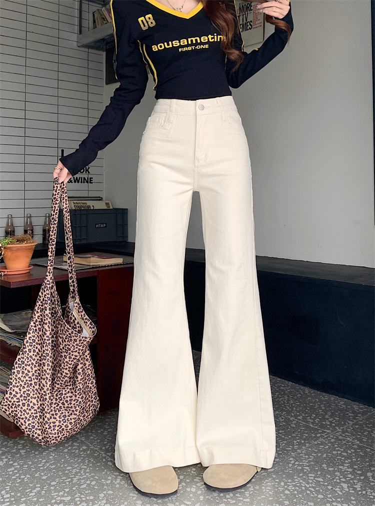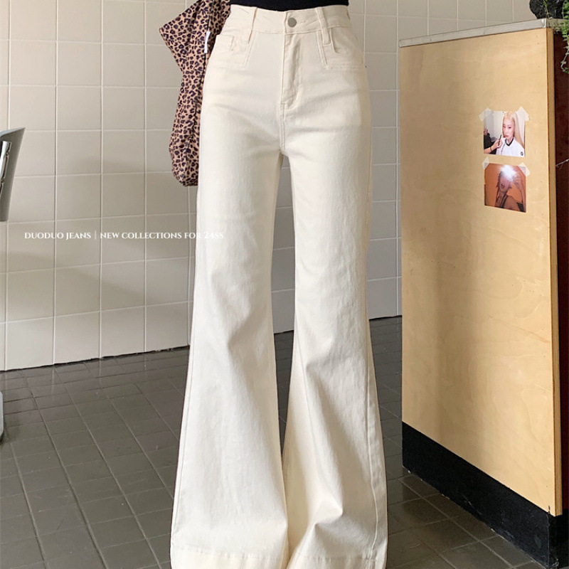 아메리칸 스타일 화이트 하이 허리 청바지 마이크로 루즈 2025 새로운 슬림 스트레치 트럼펫 바지스토어 가기