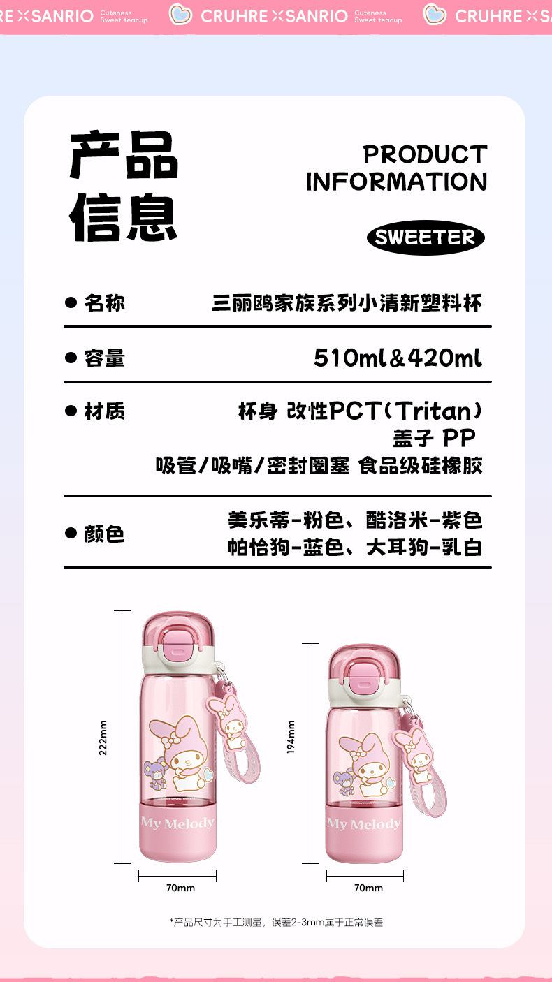 品名:三丽鸥家族系列双饮小清新塑料杯420ml/520ml