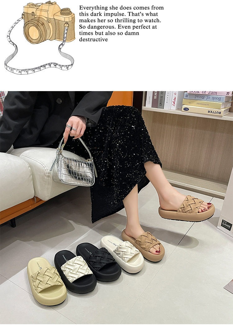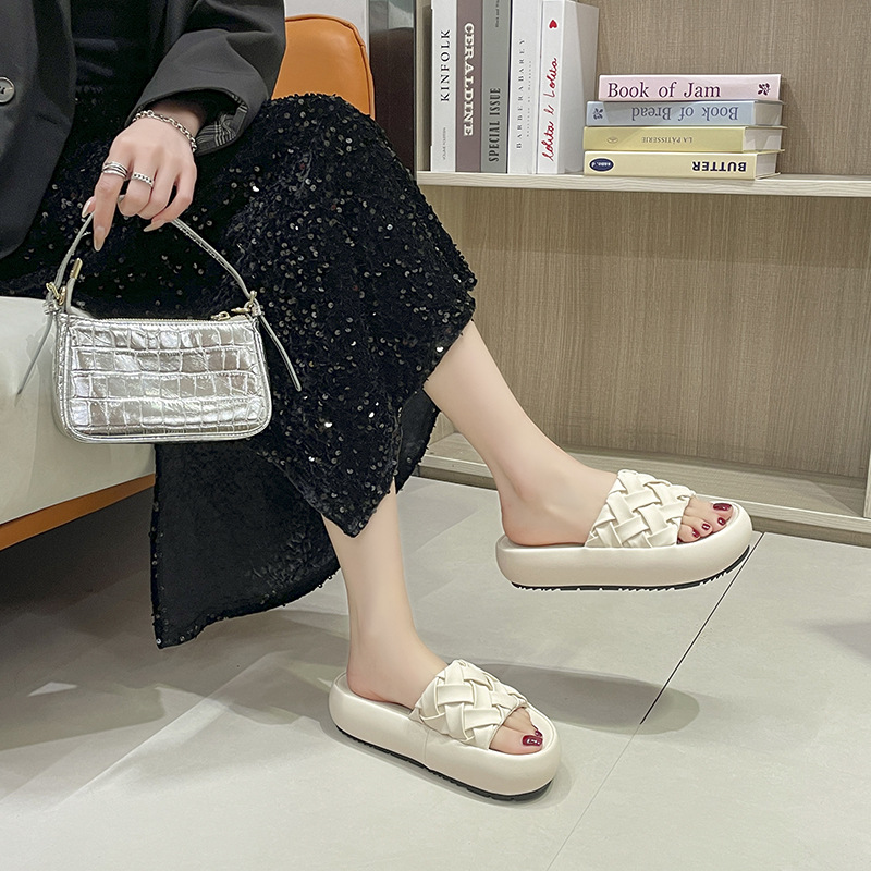 샌들과 슬리퍼 여성 아웃도어 패션 여름 새로운 두꺼운 바닥 증가 한 단어 웨지 슬리퍼스토어 가기