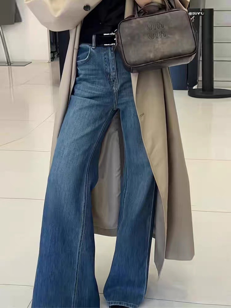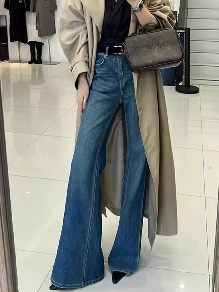 빈티지 블루 마이크로 플레어 청바지 여성의 2025 봄 새로운 높은 허리 슬리밍 넓은 다리 걸레 디자인 센스 폭발성 바지스토어 가기