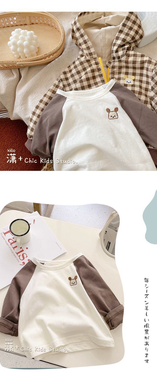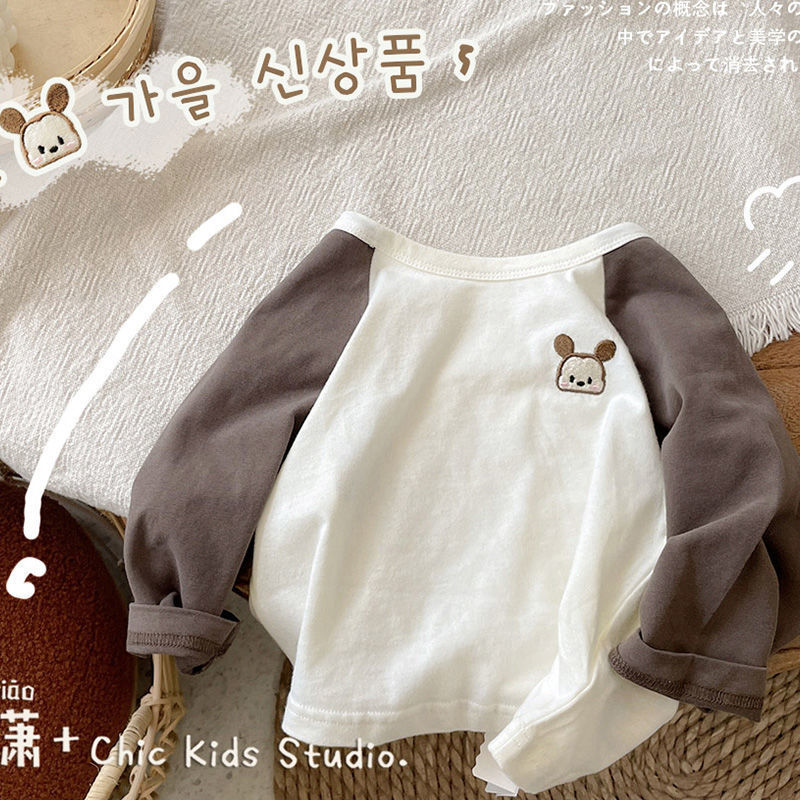아기의 가을 원피스 어린이 명암 봄과 가을 긴 소매 티셔츠 소년 소녀 얇은 자수스토어 가기