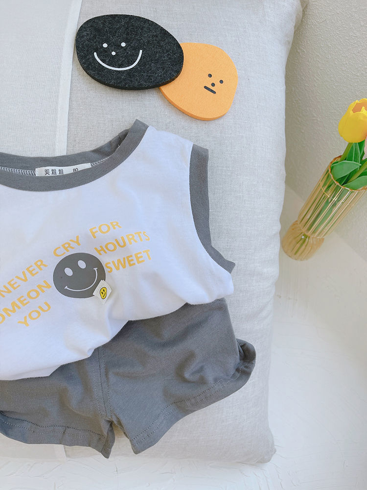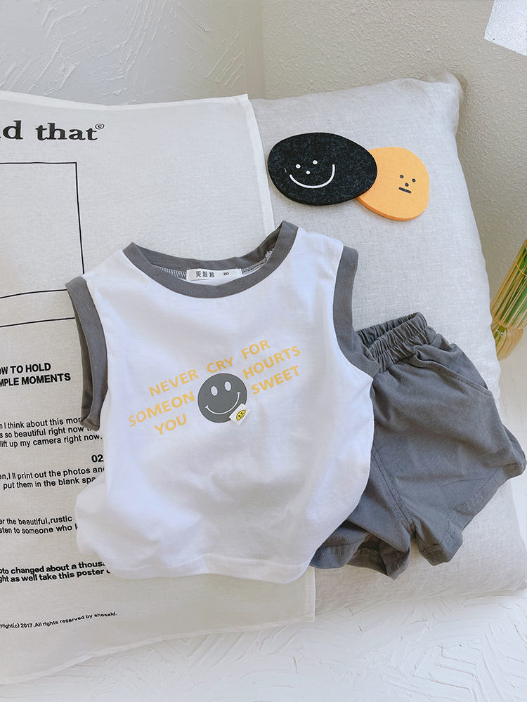 퓨어 코튼 인 한국 스타일 어린이 스마일리 민소매 티셔츠 조끼 반바지 세트 소년 양