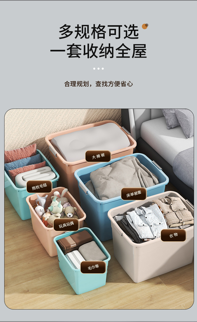 ✅가정용 대용량 초대형 저장 상자 계절 초대형 두꺼운 저장 상자 보관 상자 낙하 방지 이동 벨트 슬라이딩