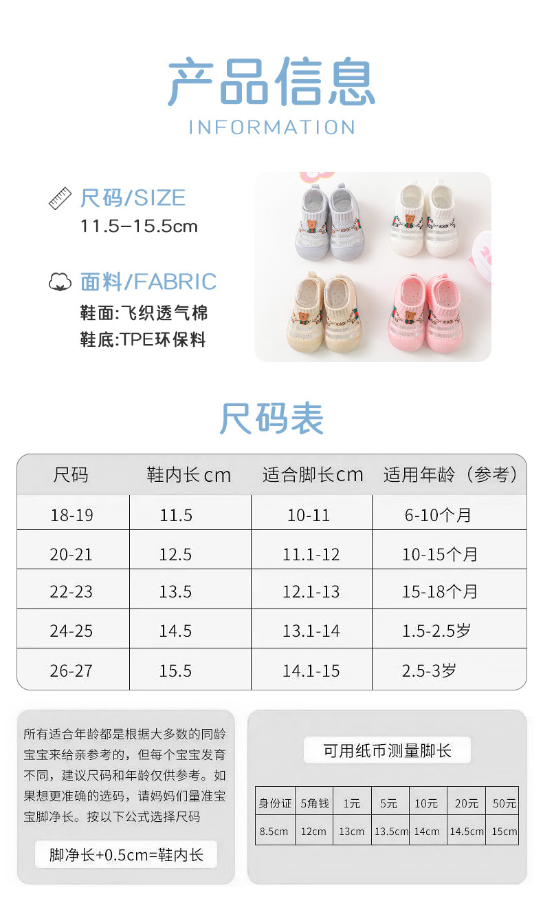 1-3 세 어린이 바닥 신발 여름 미끄럼 통기성 아기 신발 그물 신발 소년 소녀 아기 부드러운 바닥 실내