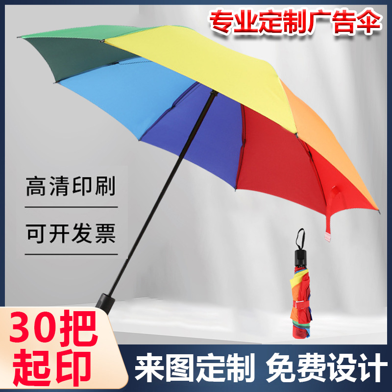 우산 사용자 정의 로고 패턴 크리 에이 티브 무지개 우산 접는 우산 태양 우산 대형 다채로운 우산 제조 업체 도매