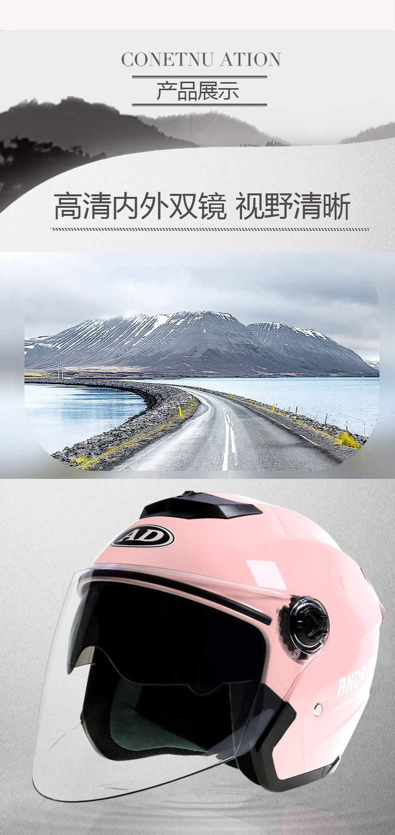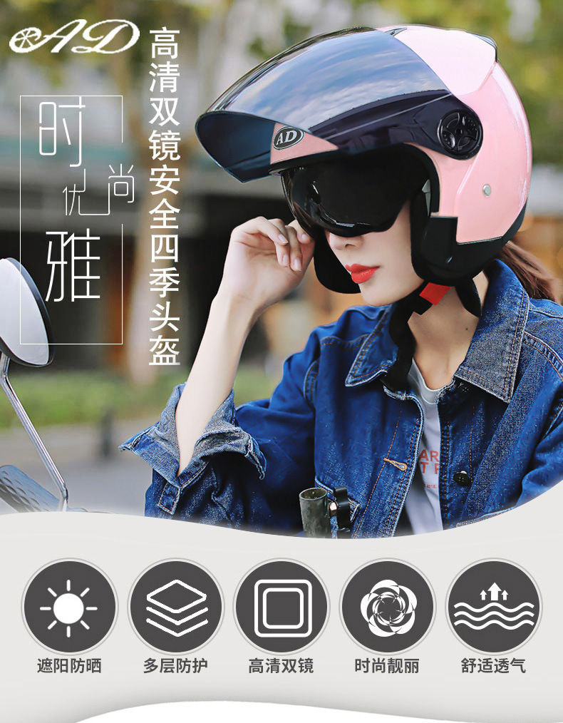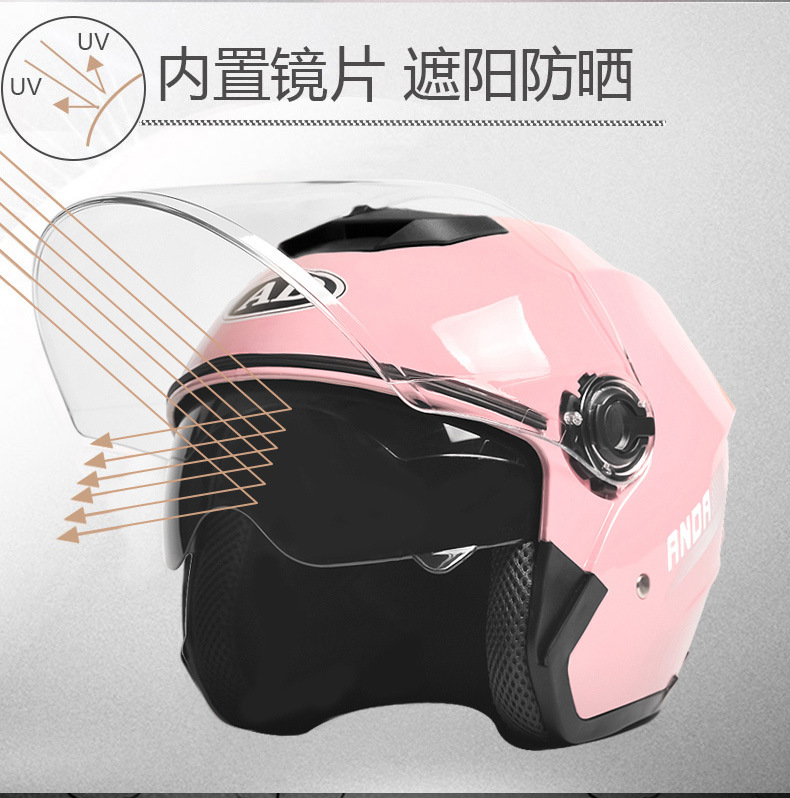 3.镜片:双镜片,外镜PC透明,内镜防晒。