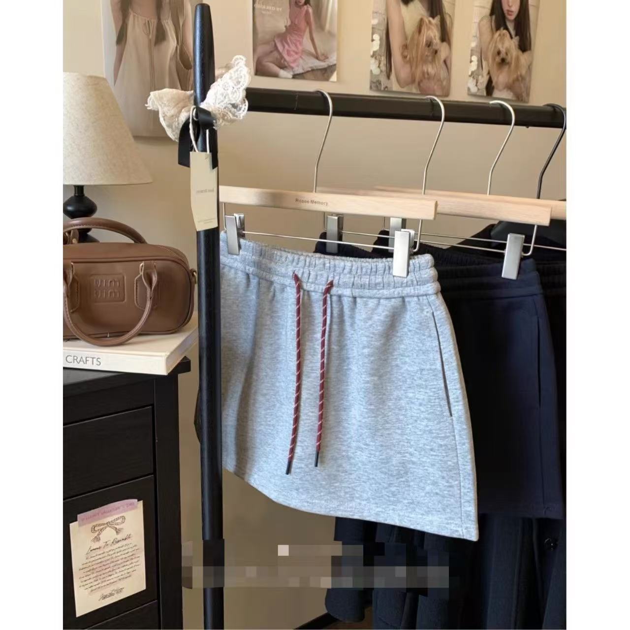 2025 년 여름 미국 스포츠 캐주얼 육종 치마 여자 봄 드로우 스트링 높은 허리 올매치 간단한 A 라인 스커트